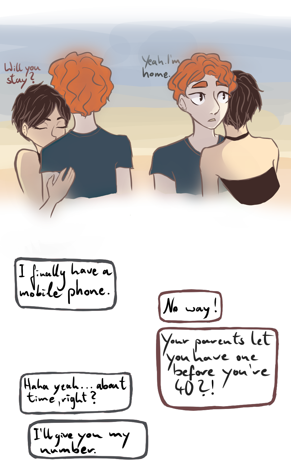 Between the second and the third panel they finaly stood up. About time... people were starting to stare at those two creeps on the floor