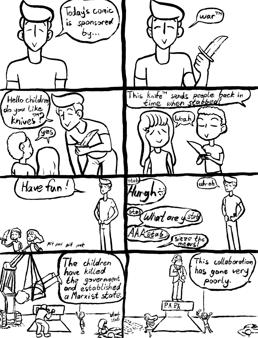 Man: Uh-oh. The children have killed the government and established a Marxist state.