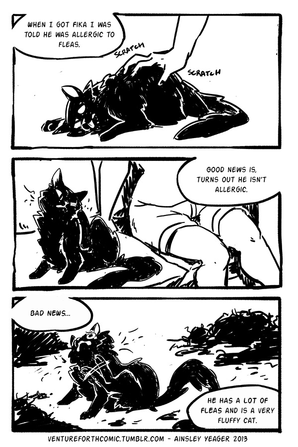 Actually my cat is allergic to fleas; She's also a fluffy black cat. The allergy is what causes her fur to shed WAY faster than it should and can cause bald spots. Fika will be very happy if you get him treated 8 )