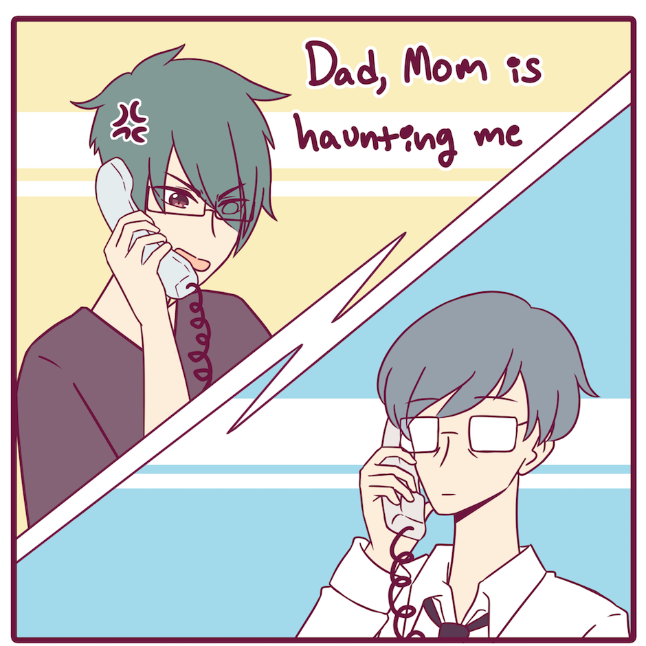 4-koma style comedy adventure of the pitiful son and the headaches he gets from his dead mom