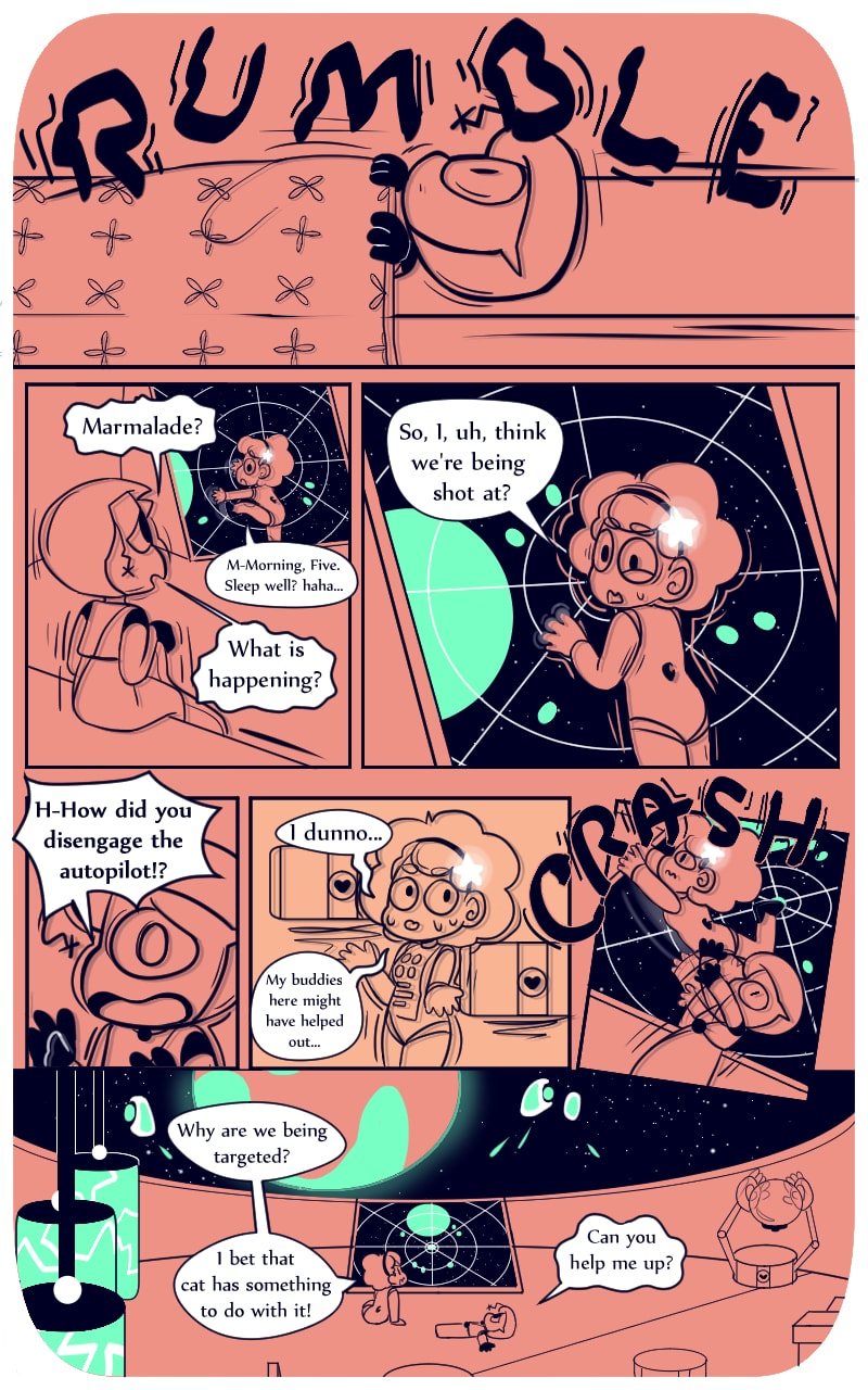 Marmalade's summer plans change when she meets a being from out of this world labeled O.N.E.5. Together they’ll travel through space to solve the mysteries of how they came to meet in the first place and hopefully stop more dangerous intruders from taking over.