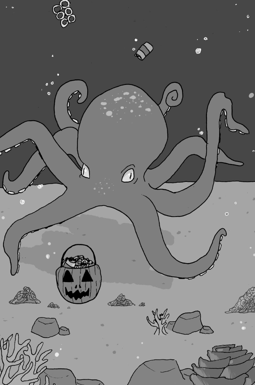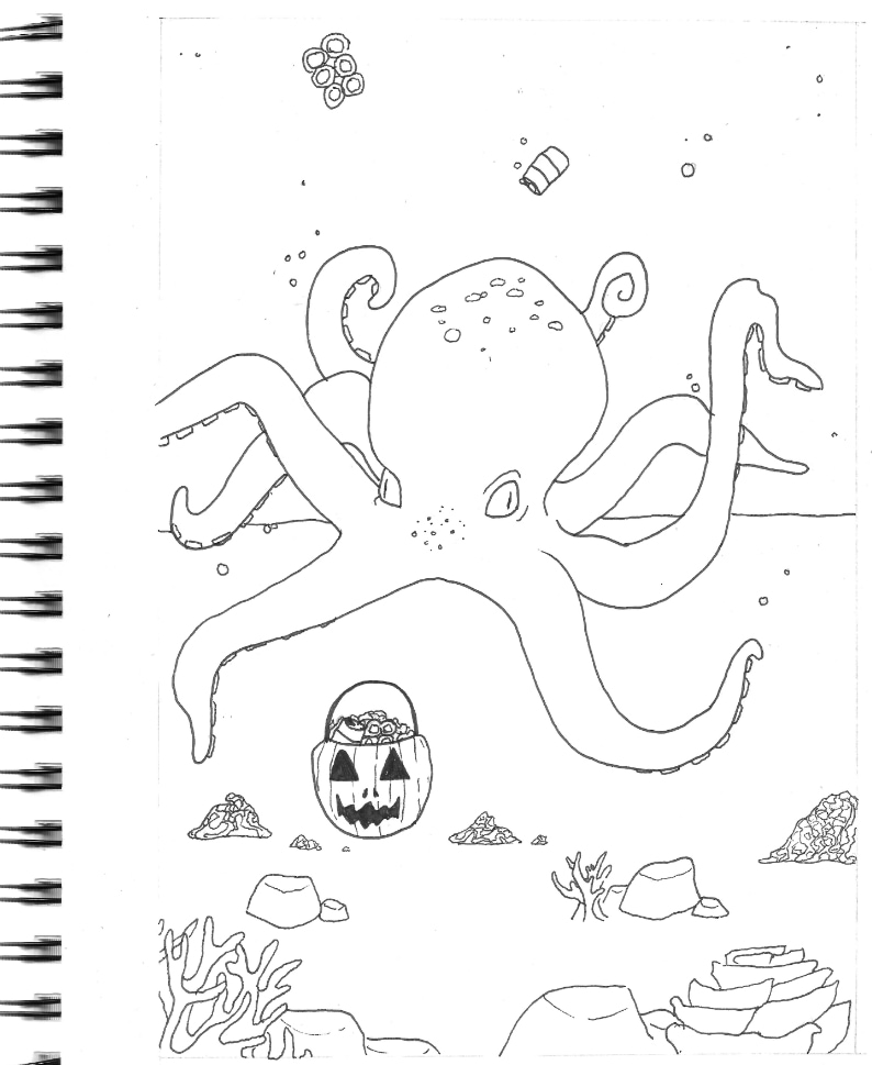 Carl the octopus cleaning up the ocean for Halloween!! (Day 9 will be uploaded later tonight)