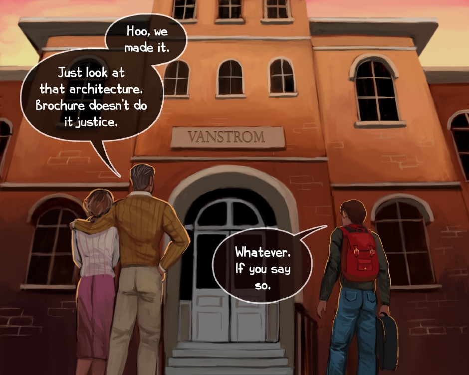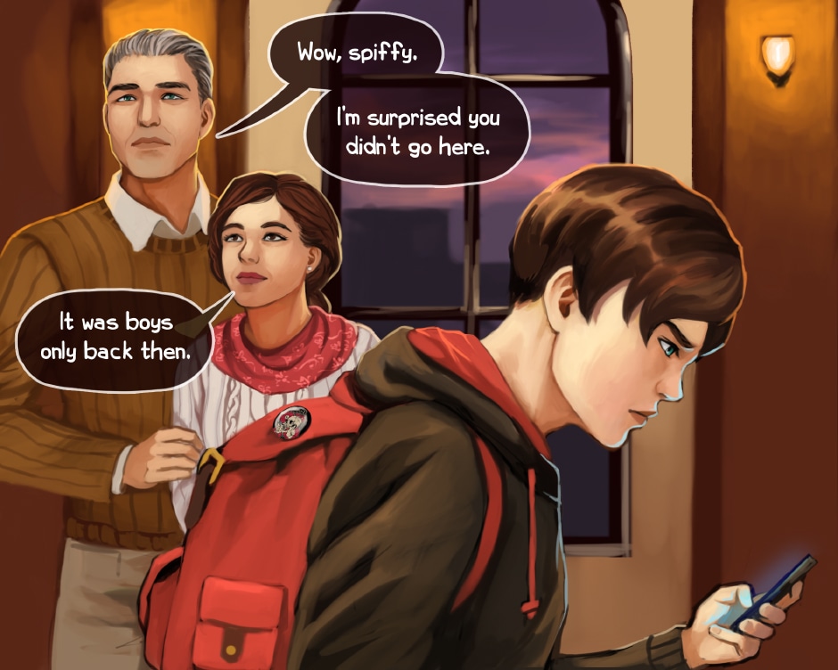 This marks the start of a scene that wasn't originally in the comic when I started it. I figured this helps with pacing and also establishes the location better.