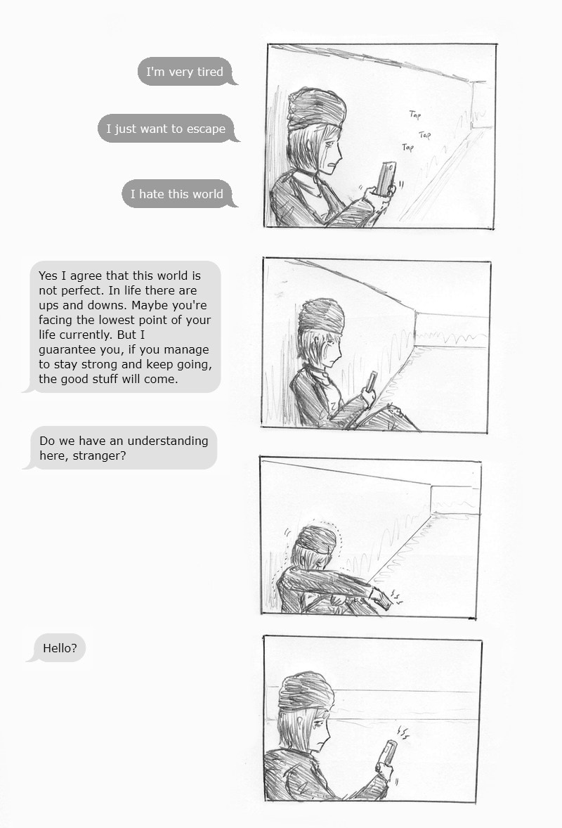 I was expecting a twist like this but, halfway through, I thought that this might just be something kinda inspirational. either way, good work as always, Gentle Reaper! ^^ I've actually been going through a rough time lately, and seeing this helped a lot. :D