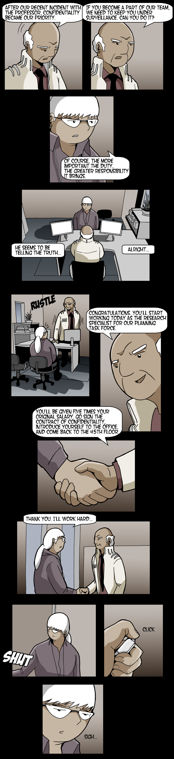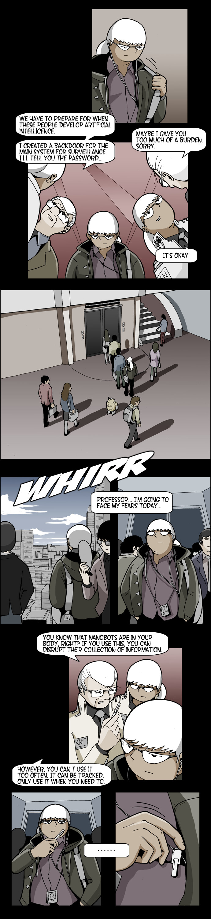 Aidie is KN Group's mascot robot that has been greeting the employees every morning. Its creator, Professor Harvey, takes Aidie on the day of his resignation and risks his life to protect it from the company. What secrets does this one robot hold?