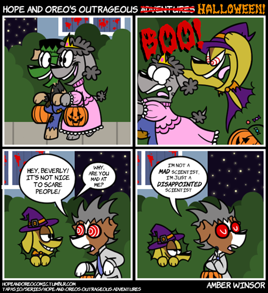 Welcome to Hope and Oreo’s Outrageous Halloween 2017! This is the very first H&O Halloween ever published, and I’ll be trying to make it extra special by posting 8 full Halloween-themed comics this month! Make sure to check back every Tuesday and Saturday this month for a brand new spooky Hope and Oreo!