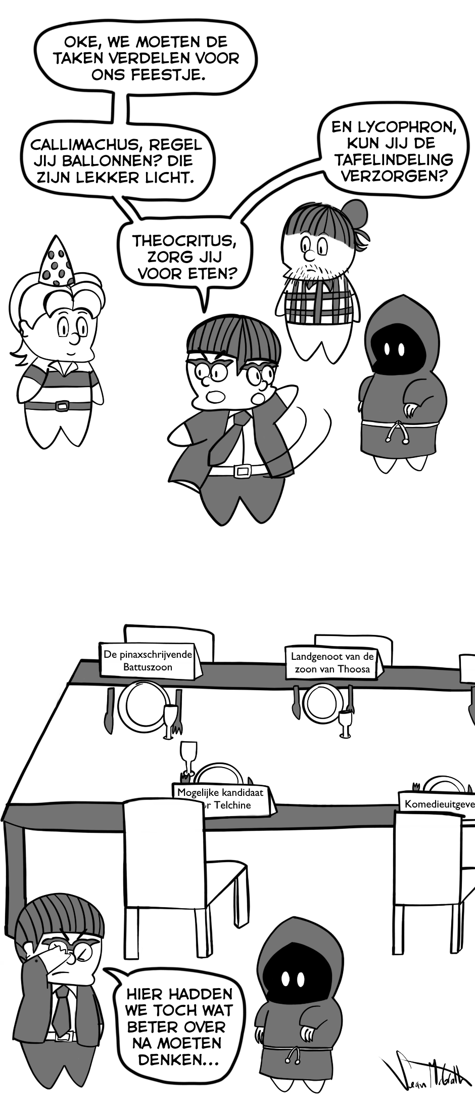 Een strip over de avonturen van de Hellenistische dichters in hun pogingen om zo obscuur mogelijke verwijzingen te maken naar uitgestorven dialecten, lokale tradities en vergeten poëzie.