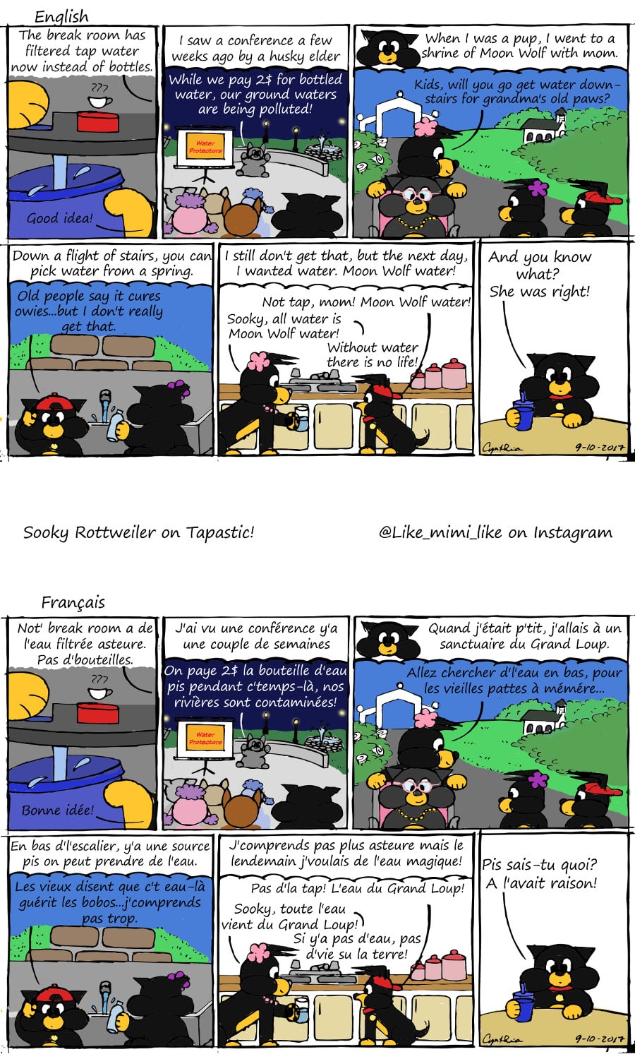 There really is a spring there that people say cures ailments. I never really believed in that but the discussion Sooky has with his mom in panel five is exactly the conversation my mom had with me at about age 5 or 6. Last july, I went back to St. Anne with my sister and Chloe and had the same discussion with her: Water is the source of all life! It is a sacred thing if there is one and that is true no matter if you are christian, muslim, atheist, pagan, buddhist, anything-ist or just plain atheist.