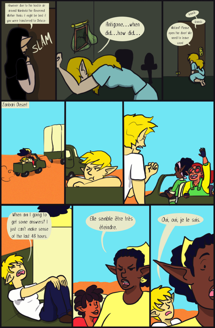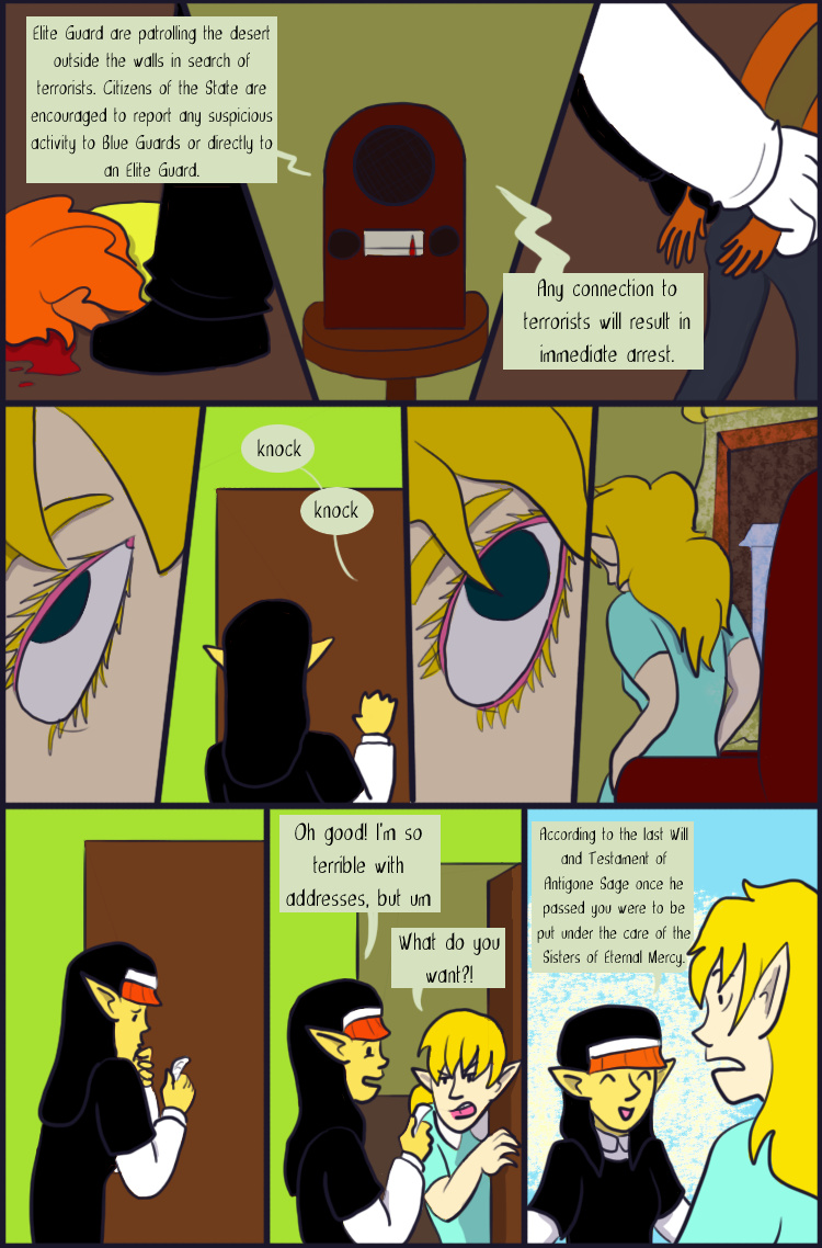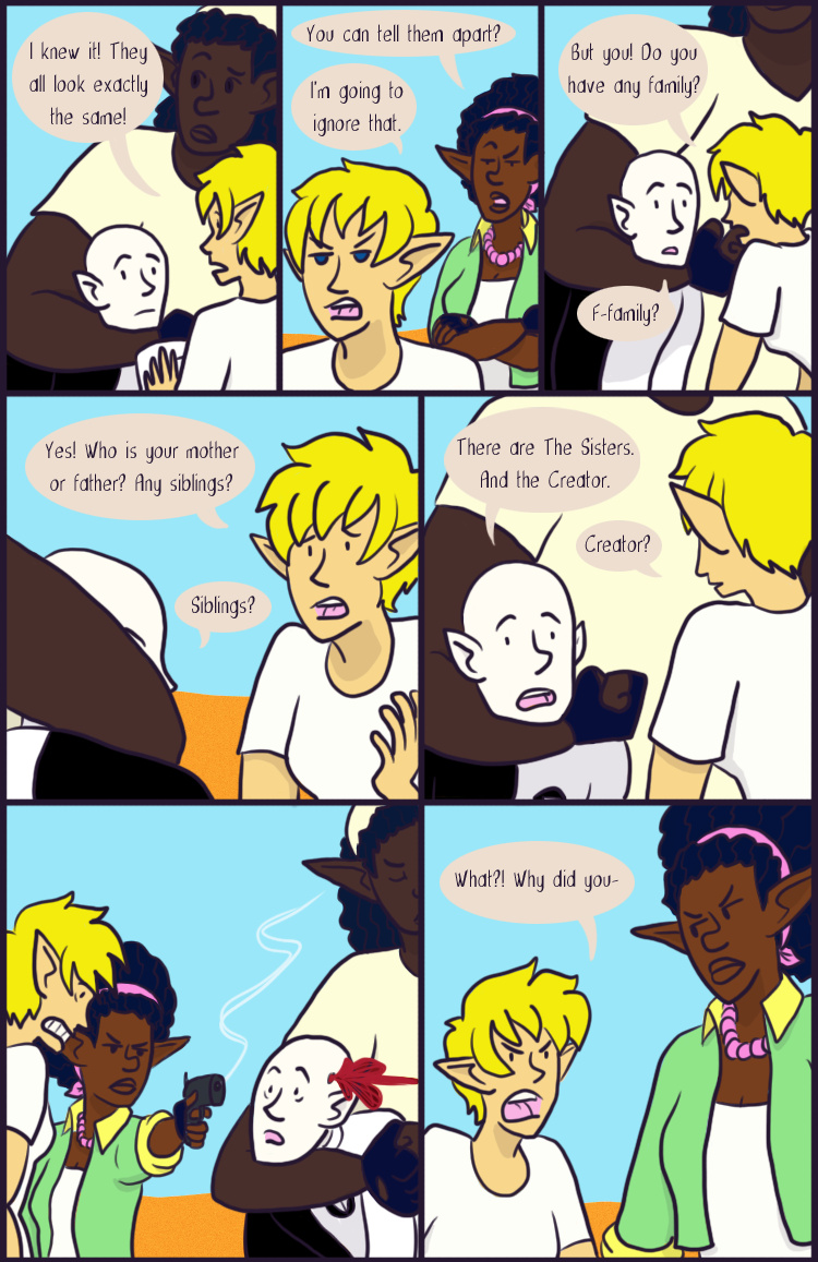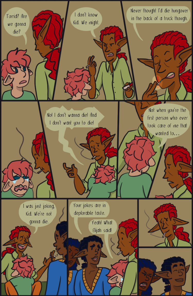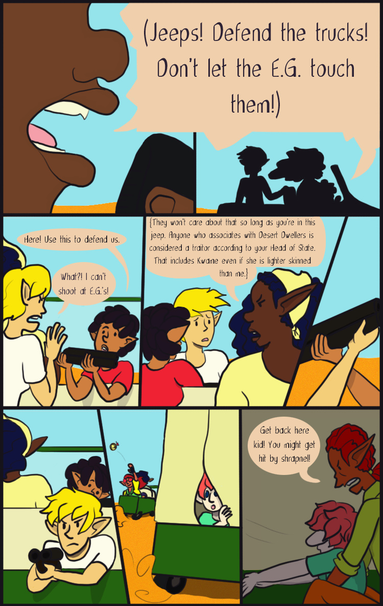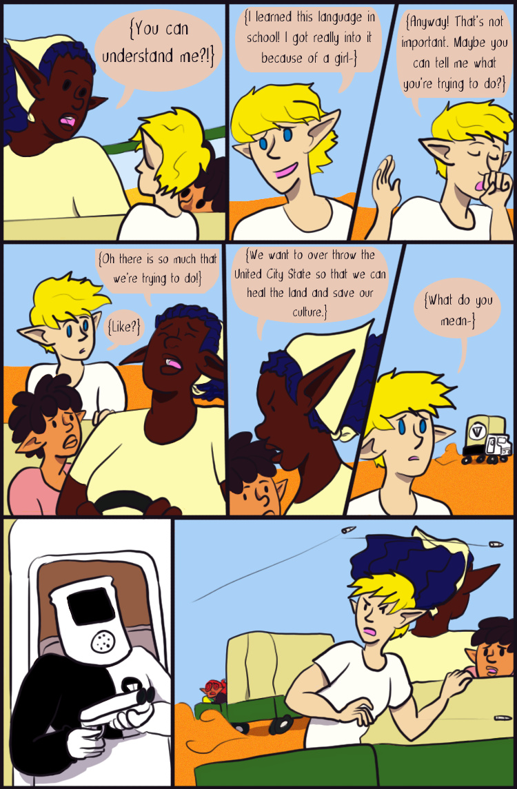 Desert Grey is a tale of gay elves who over come oppression with explosions in a fantasy world during it's equivalent of the 1960s. More specifically it's about two stories happening simultaneously about a lesbian cop who searches for answers after tragedy befalls her and a gay biracial alcoholic who reconnects with his father's people.