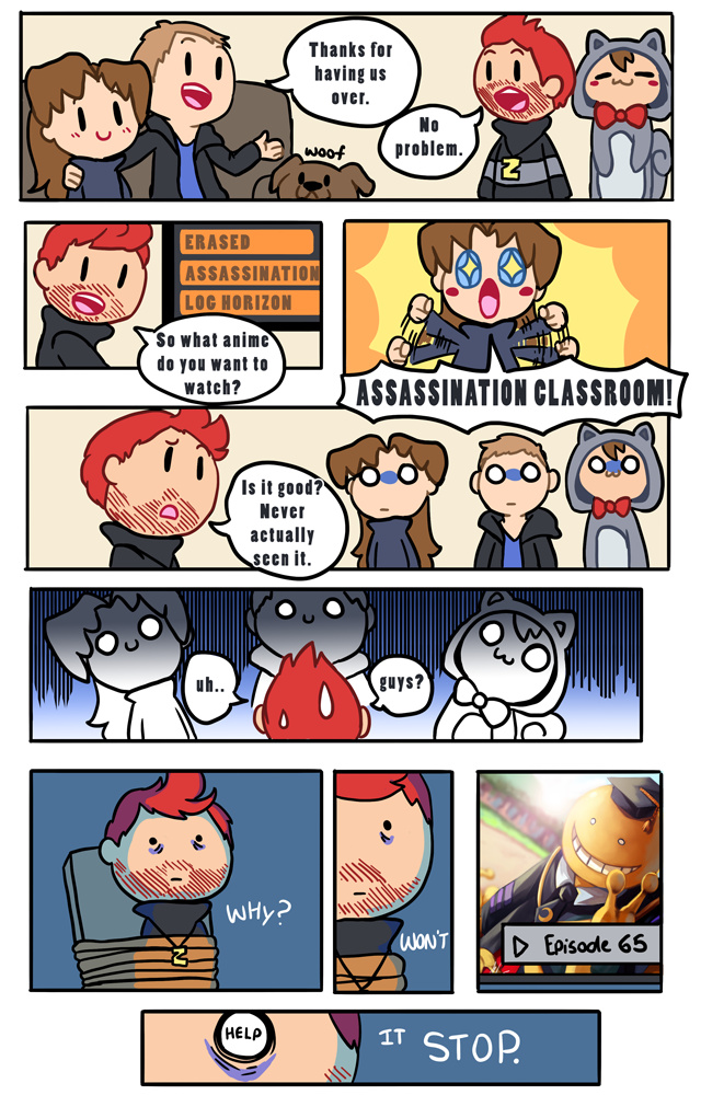 Anime night with Max and Ross. I wonder if he'll invite us over more often.