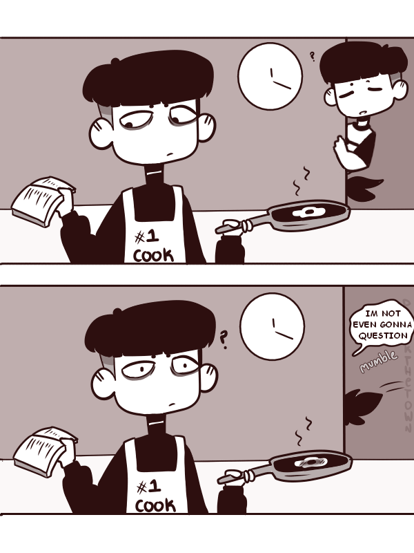 Lololol the apron says “#1 cook” but the egg is burning lolol
