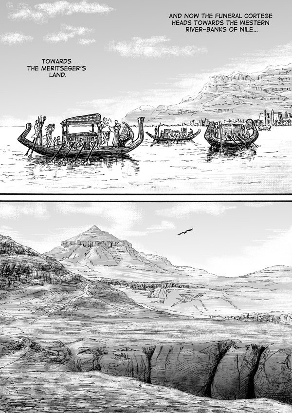This is the experimental comic about Ancient Egypt, where ancient texts are coupled with a narrative fantasy. The dead man travels to the Afterworld and with all his sins and hopes he tries to get to the Chamber of the Two Truths, where the judgment of Osiris takes place.