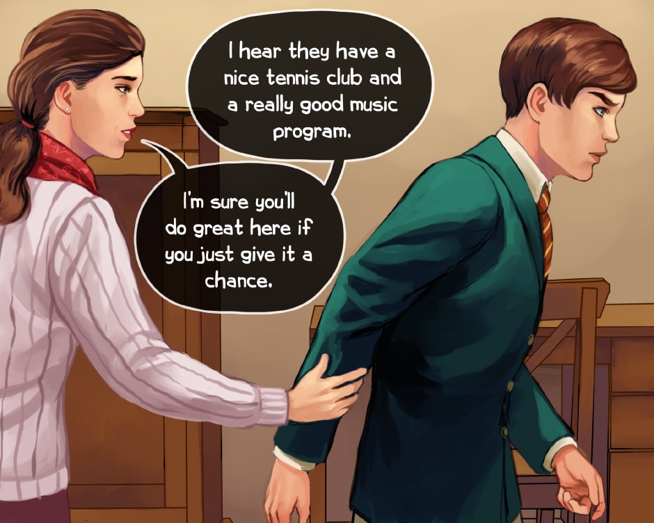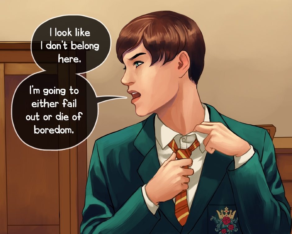 Adrian Pembroke is a boy with a penchant for playing guitar and running headfirst into trouble. After graduating from high school, he loafs around town with a questionable group of friends. His parents put their foot down after his mischief turns into a run in with the cops. He finds himself shipped off to Mercier Academy, an elite boarding college. Miserable and feeling utterly out of place, Adrian soon lands himself into trouble. He is rescued from his own antics by Acario Ambrose, the resident golden boy of Mercier. Appearances are deceiving, and Adrian learns a great deal more about himself and his new friend than he ever bargained for.