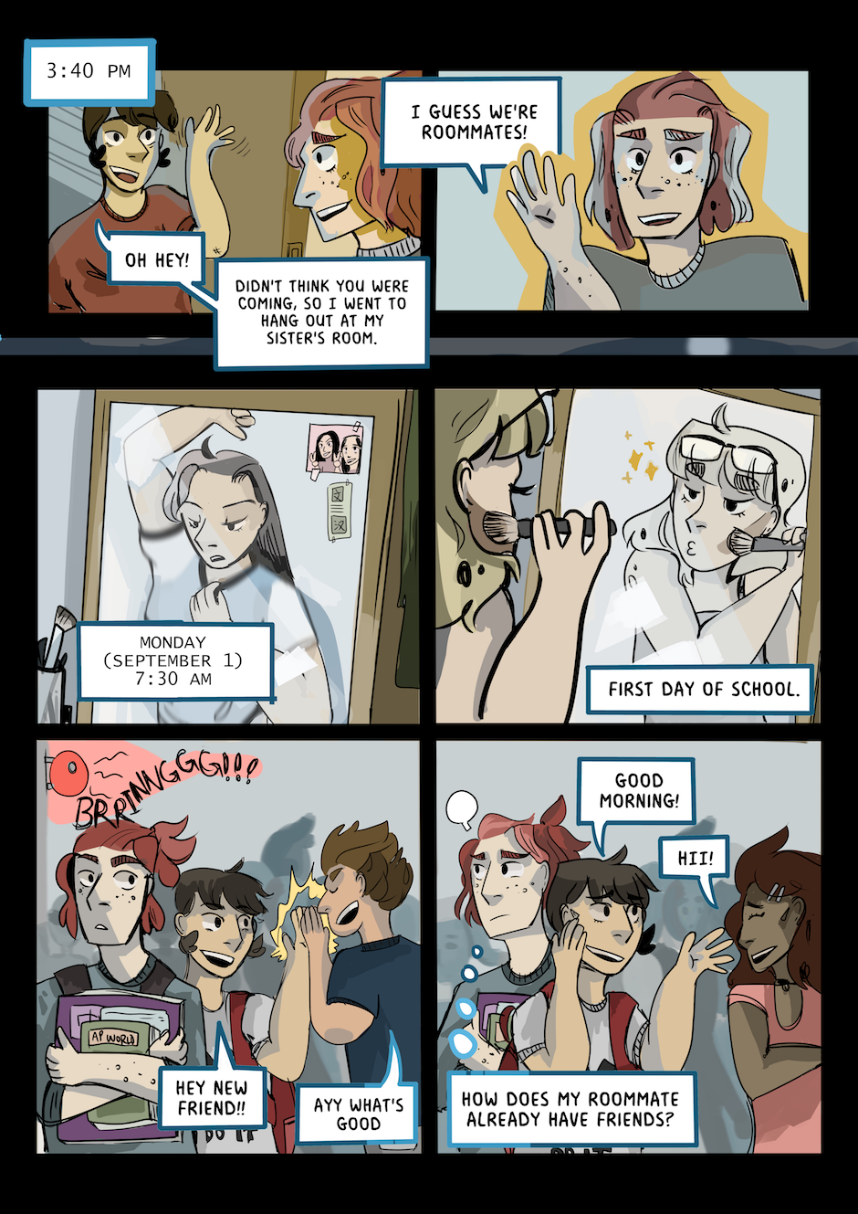 First page of Chapter 2, first day of school... Soren is being relatable already u_u And Kasen is beating her face woo!!