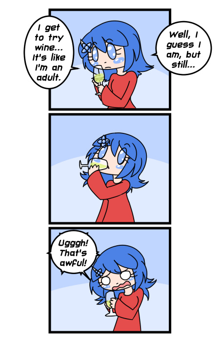Oh geez, I got so busy with stuff that I almost forgot to upload this! And... Yeah, wine tastes bleh. :P