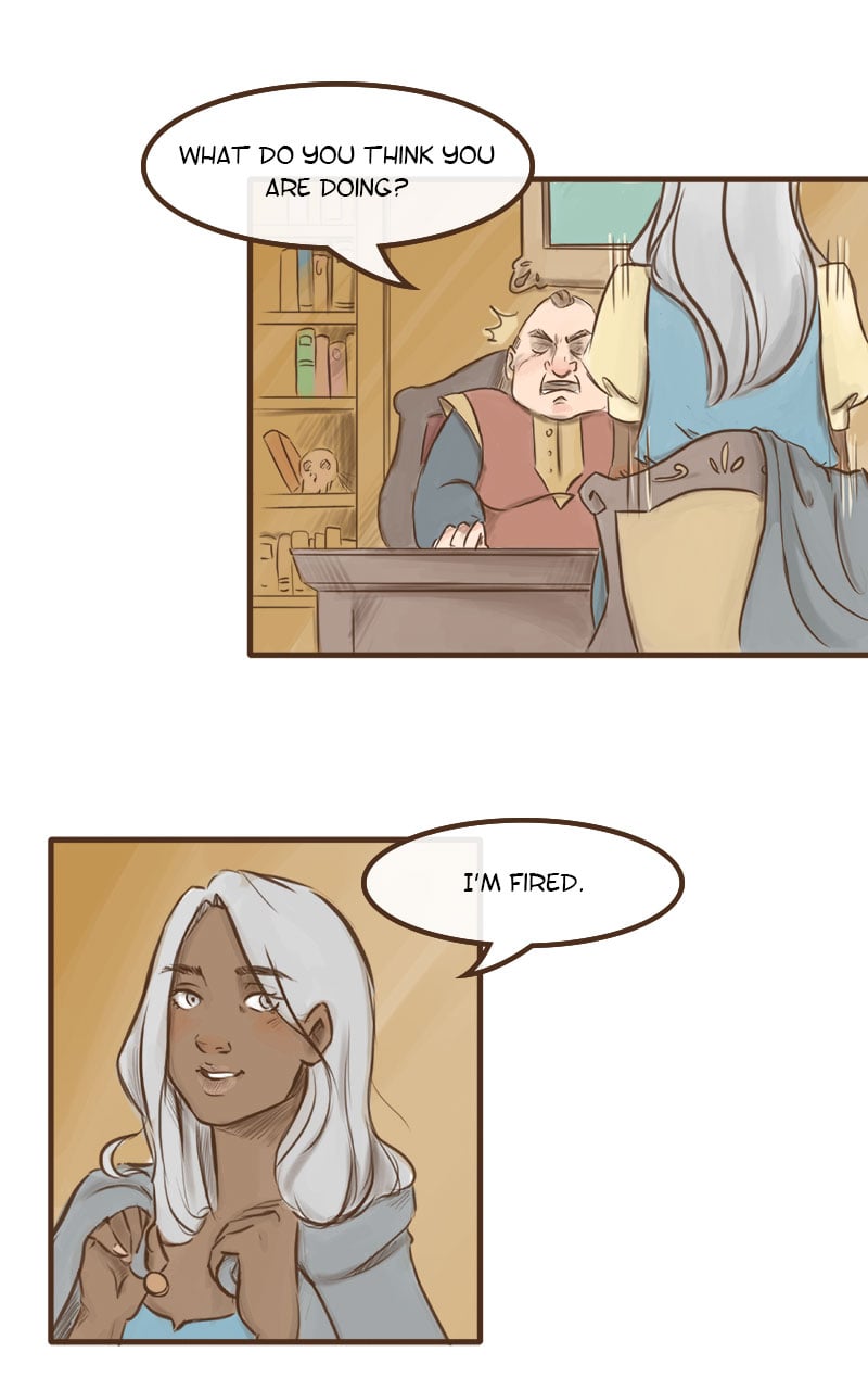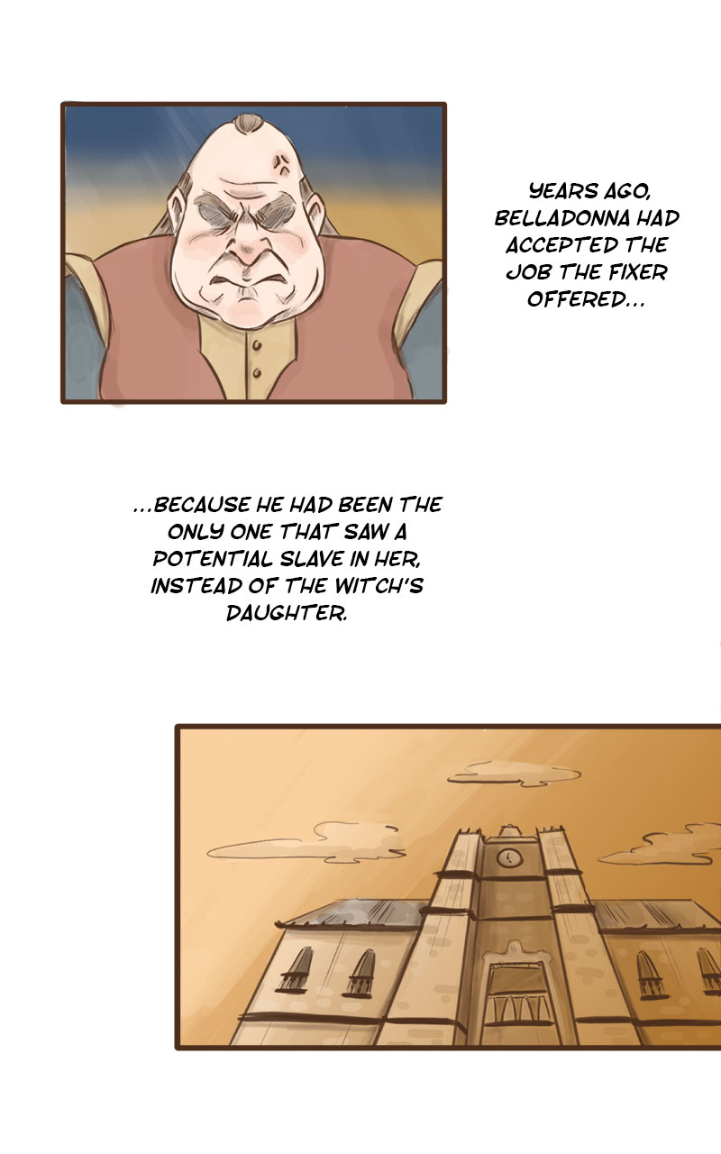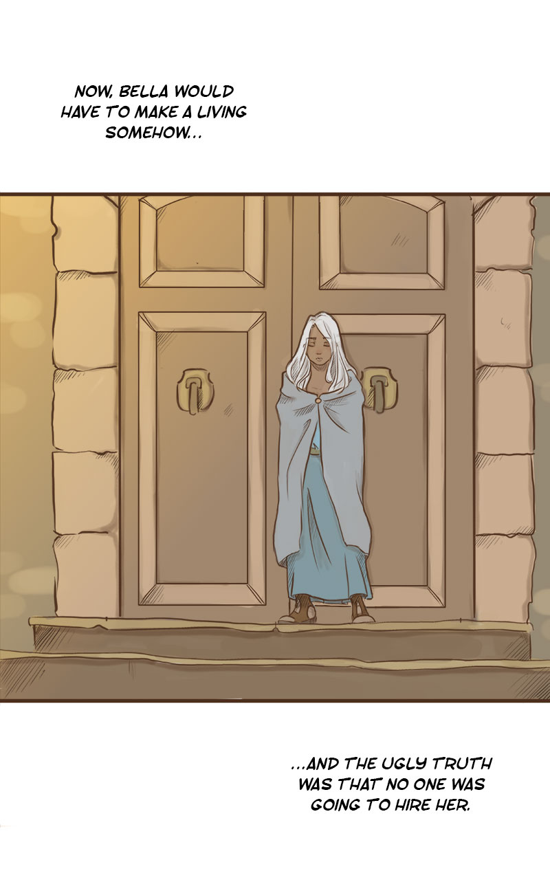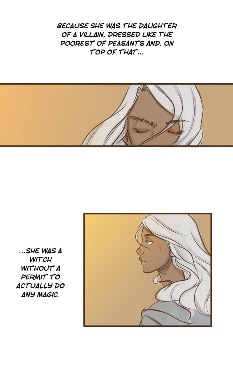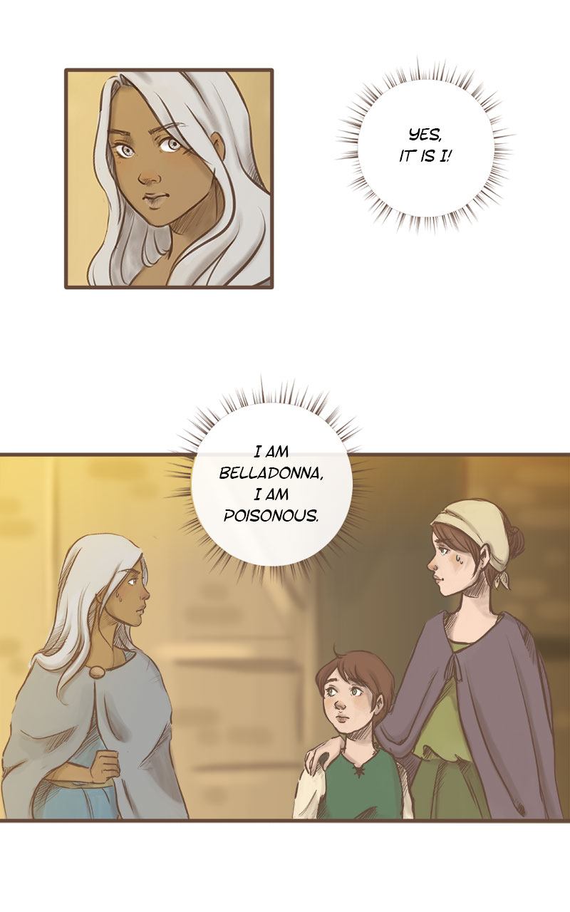 "My mistakes are not yours." Belladonna is a young witch without a license to do magic. She tries to make a living in a world that still remembers the cruelty of her mother, The Bane of the East, the infamous witch who terrorized the king and his army for years. The only one who didn't fear her -and might help Belladonna out- is Rhys, the villain's former apprentice...