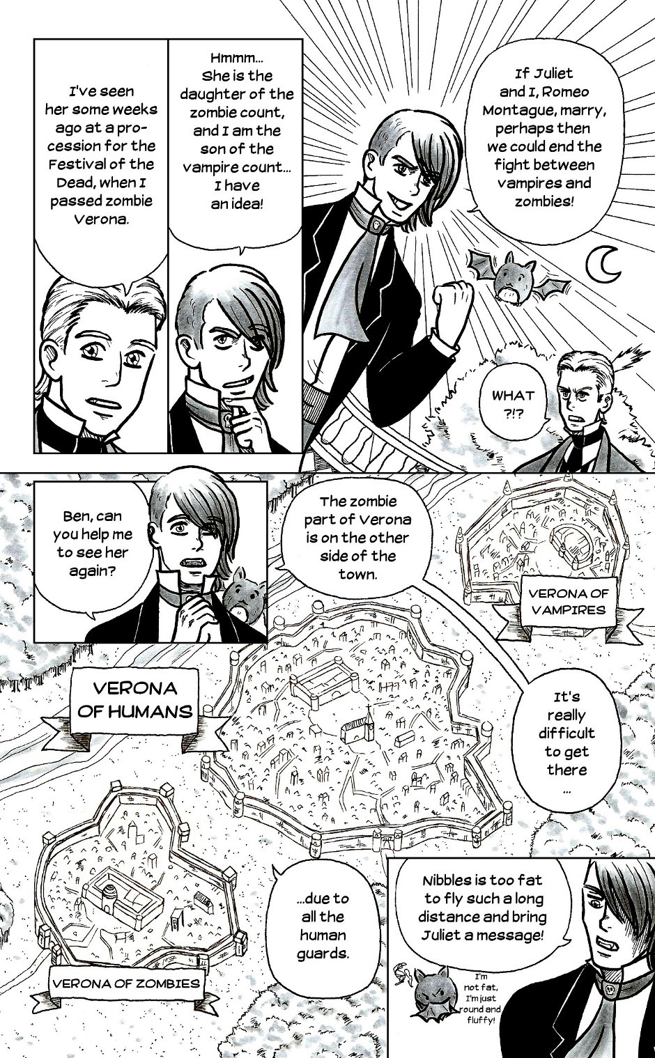 In Verona, Italy, zombies and vampires live as neighbours next to each other. Although they hate the other's guts, they live more or less in peace together. But the humans in Verona try to fight back: during a vampire hunt, organised by humans, Romeo Montague, the son of vampire count Montague, runs into danger - and gets saved by a pretty zombie girl, of all people!