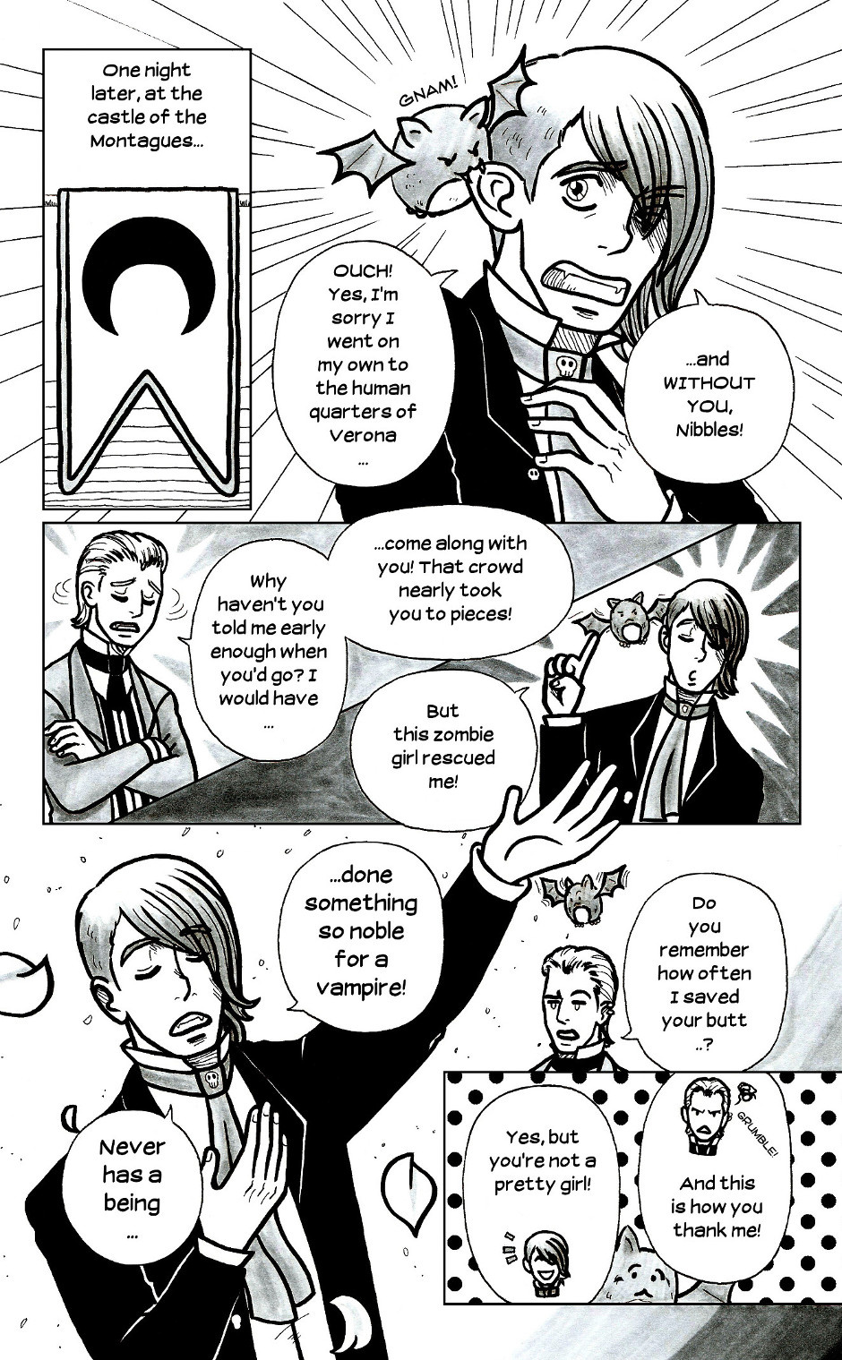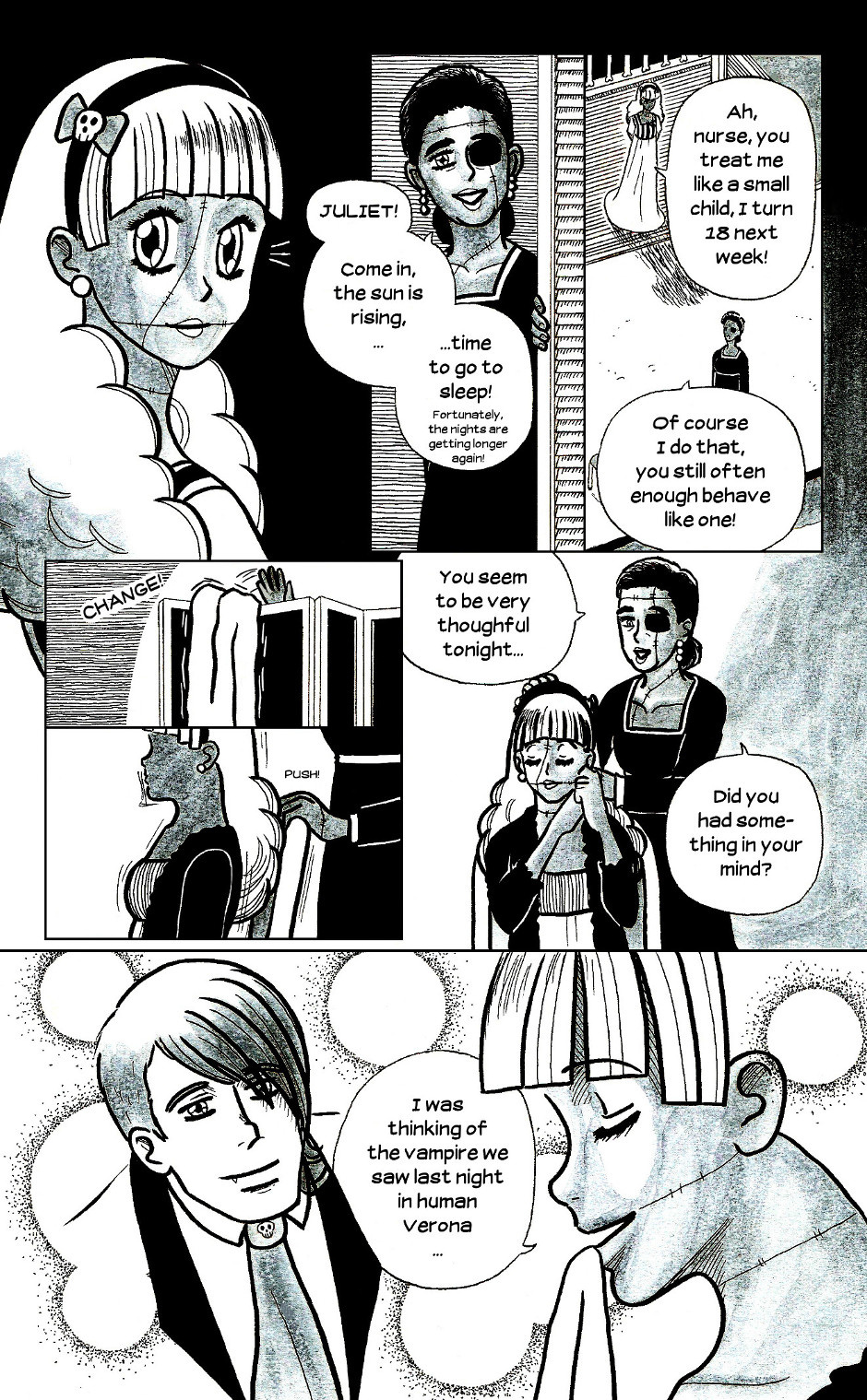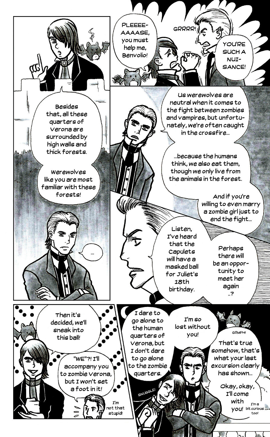 This is a horror comedy version of William Shakespeare's famous play. With a (Warning, spoiler!) different ending than in the original, after all, Romeo and Juliet are undead in this story - they cannot die...Basically, this comic is my answer to the vampire/zombie/werewolf cult that you find in the media at the moment. And yes, a werewolf also appears here.