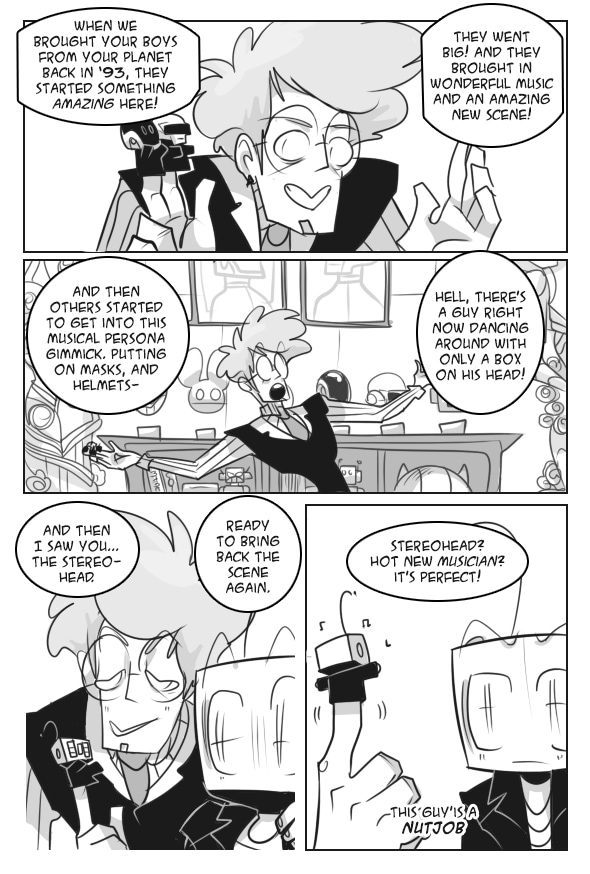 Infinity, a stereohead robot, finds himself conflicted with his worth as a person, as a partner, and as a friend. Having trouble with feeling at home on Planet Ribbon and finding happiness, his boyfriend, Cloudburn, and his cousin, Ohm, do the best they can to help him feel worthy. Things seem to go downhill when Quence, a new friend, worries Cloudburn about Infinity’s motives towards him. That is, until an outer-worldly encounter changes all of their lives, for better or for worse, and may just show Infinity what home really is.