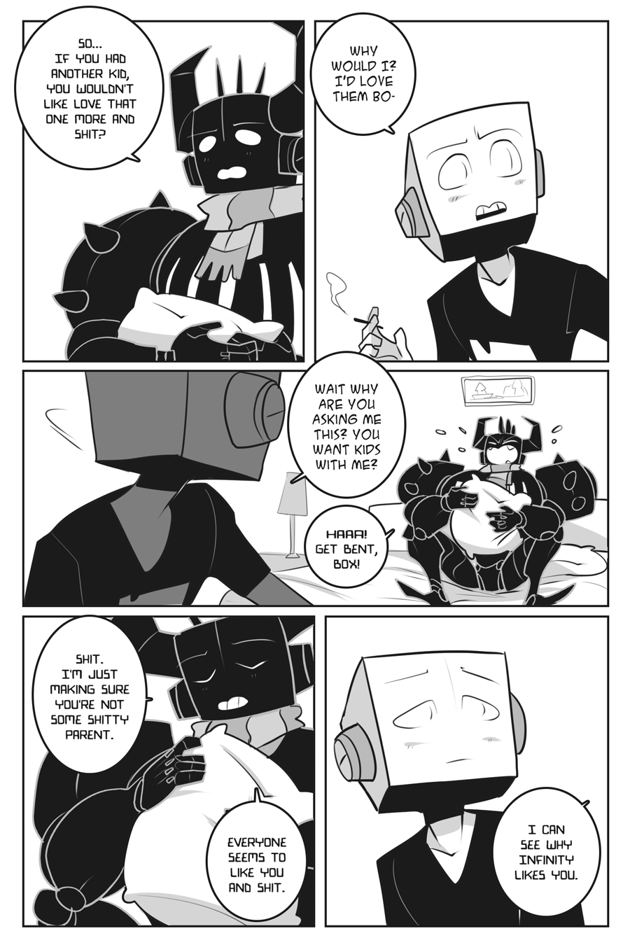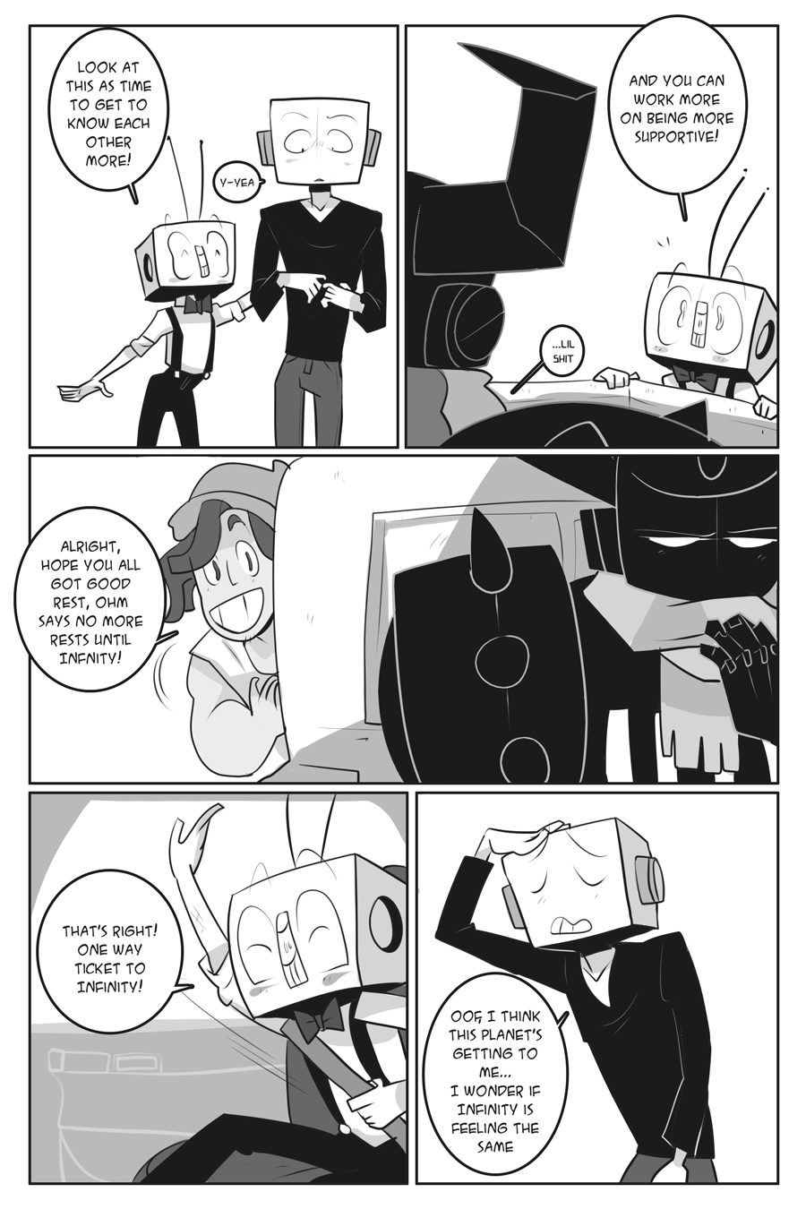 Infinity, a stereohead robot, finds himself conflicted with his worth as a person, as a partner, and as a friend. Having trouble with feeling at home on Planet Ribbon and finding happiness, his boyfriend, Cloudburn, and his cousin, Ohm, do the best they can to help him feel worthy. Things seem to go downhill when Quence, a new friend, worries Cloudburn about Infinity’s motives towards him. That is, until an outer-worldly encounter changes all of their lives, for better or for worse, and may just show Infinity what home really is.