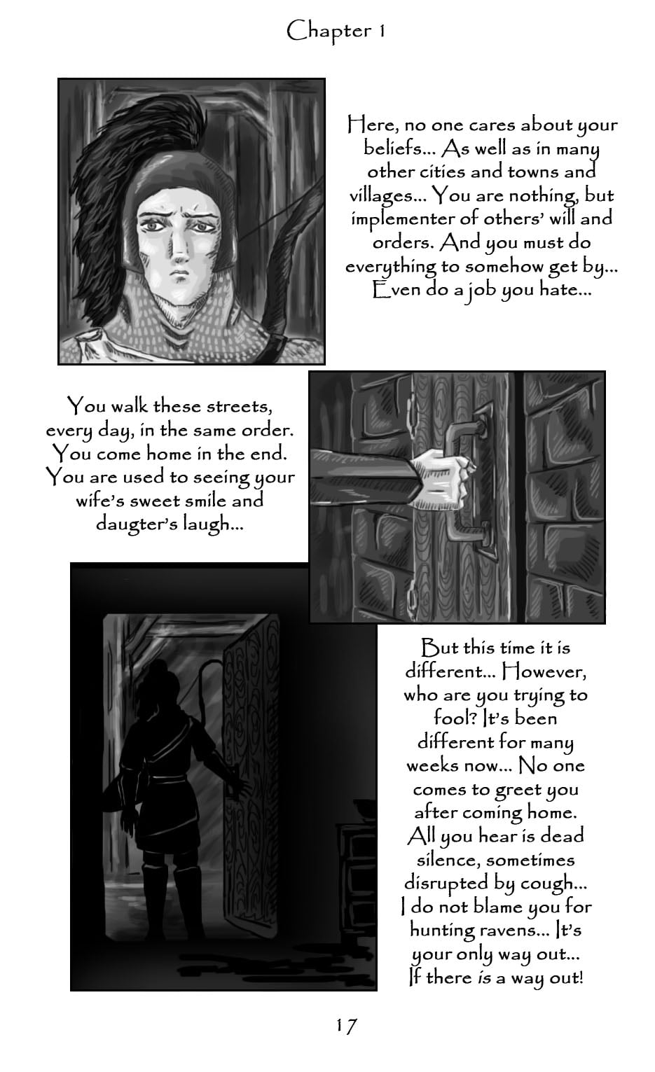 In Land of Amaranth ravens have been regarded as cursed birds for hundreds of years... They have been banished to the Outer Forest, but recently have returned and fly over the little towns and huge cities once again. This doesn't go unnoticed and Ravenhunters set out once again to fight against them. A young girl, who is about to become a paladin, finds killing birds a wrong act and tries to save every raven she can and is almost executed, as a mysterious man saves her life...