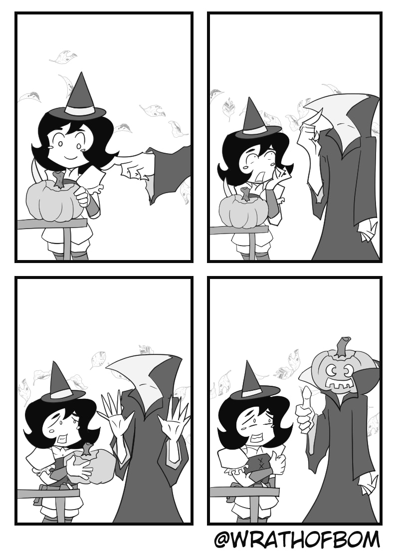 #four_panel_comic #Halloween #pumpkin #fairy_tale #snow_white #lol #cute #Headless #jack_olantern