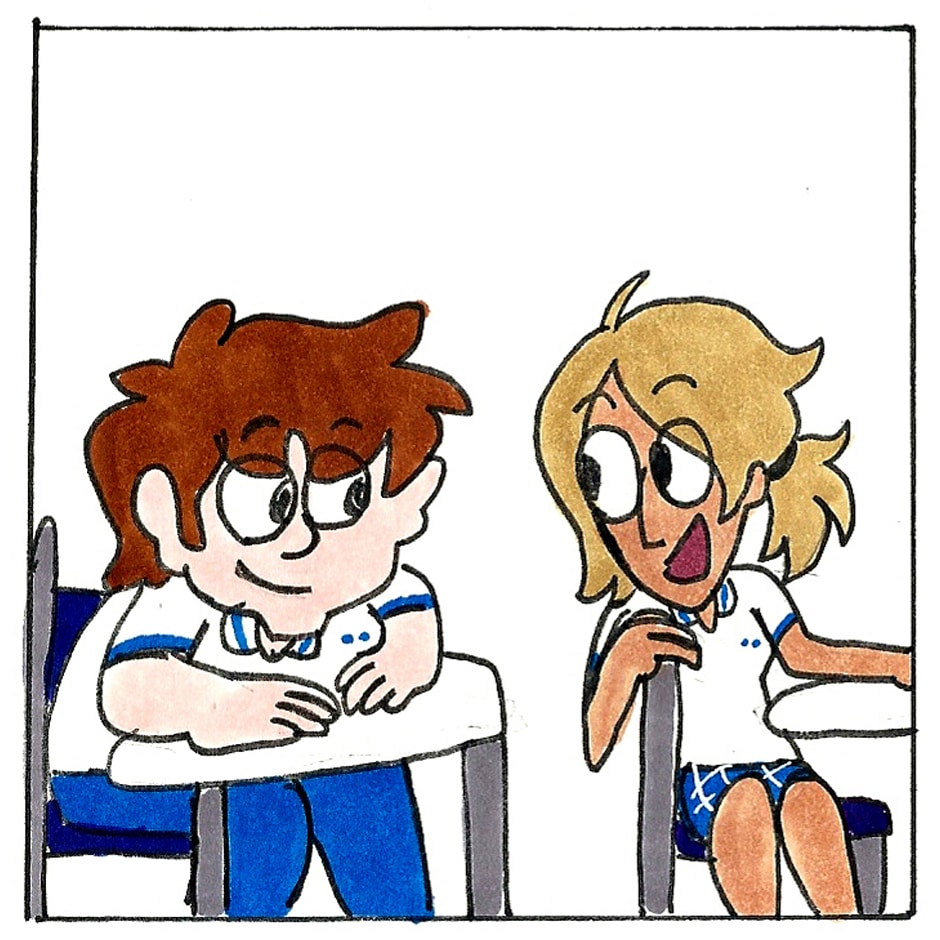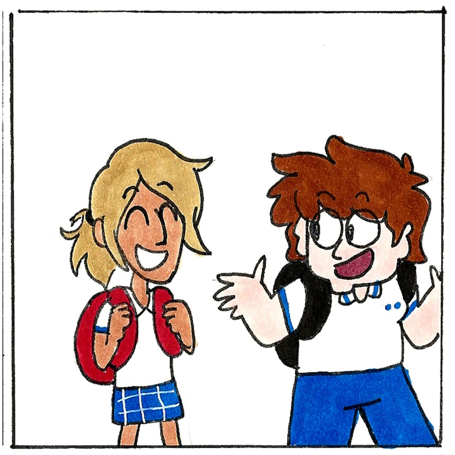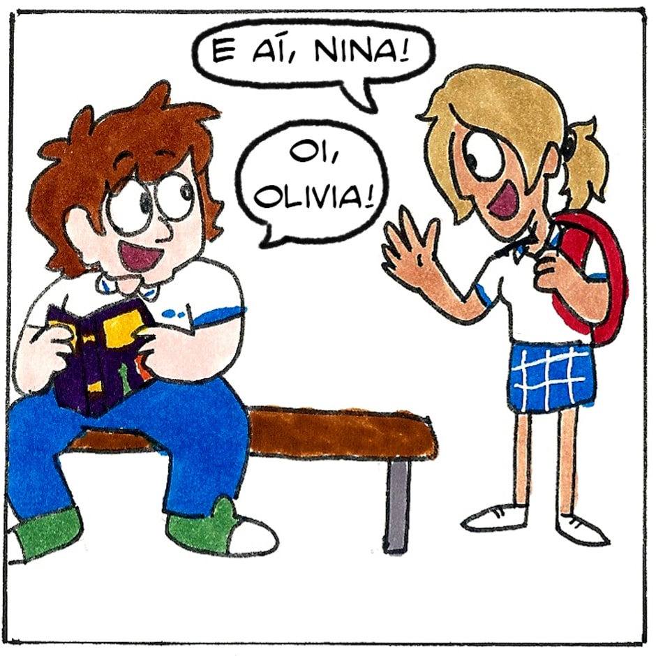 Nina e Olivia se aproximam.