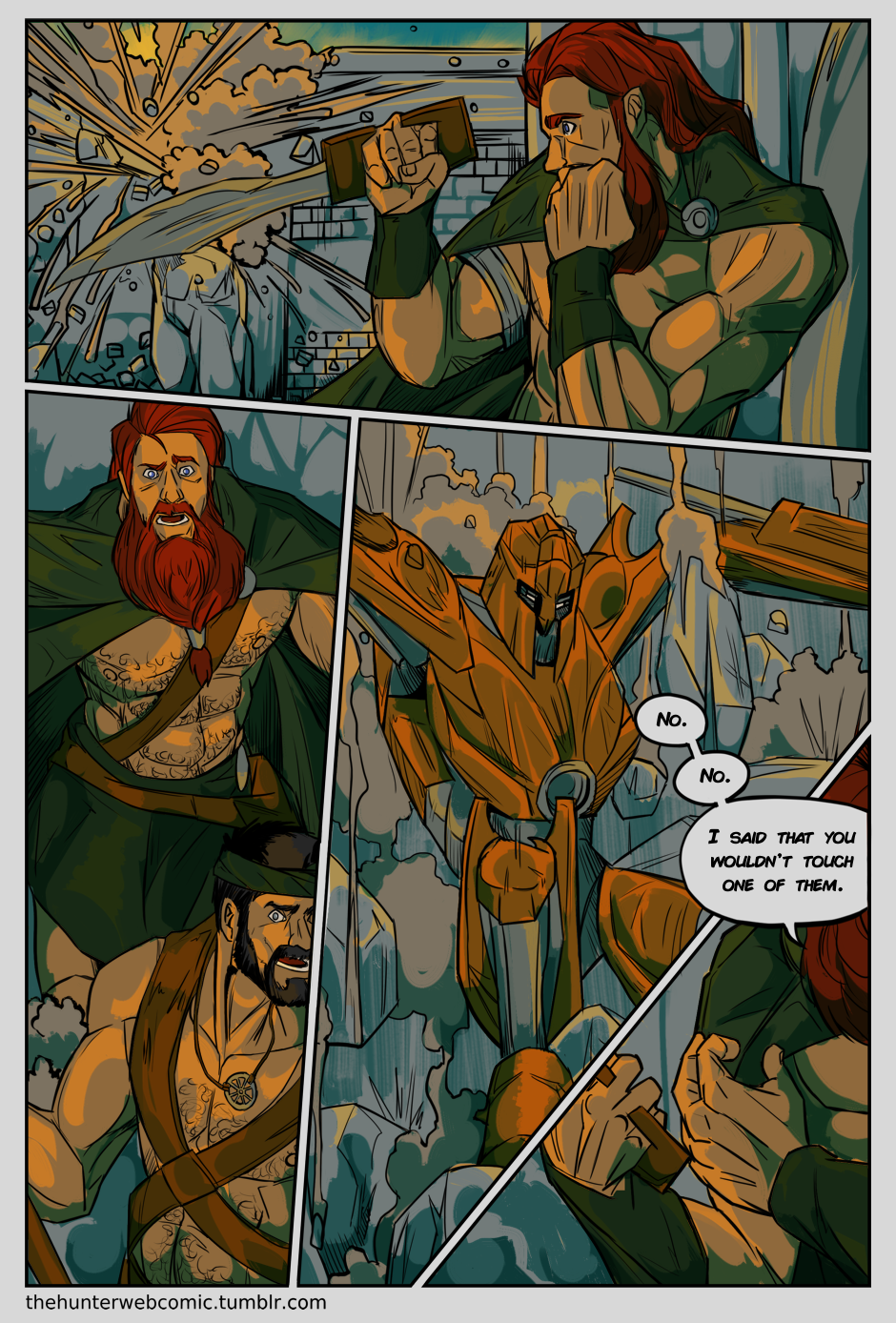 A story developed on the myth of The Noble Savage, that involves a group of strong nomadic men (the hunters) in their battle for survival against an ucronic Empire of Knossos. And, uh, they're all homo- and bisexual, bisexual, because, admit that, the gay collective fantasies were build around hyper masculine and wild characters as Conan, Tarzan and John Carter.