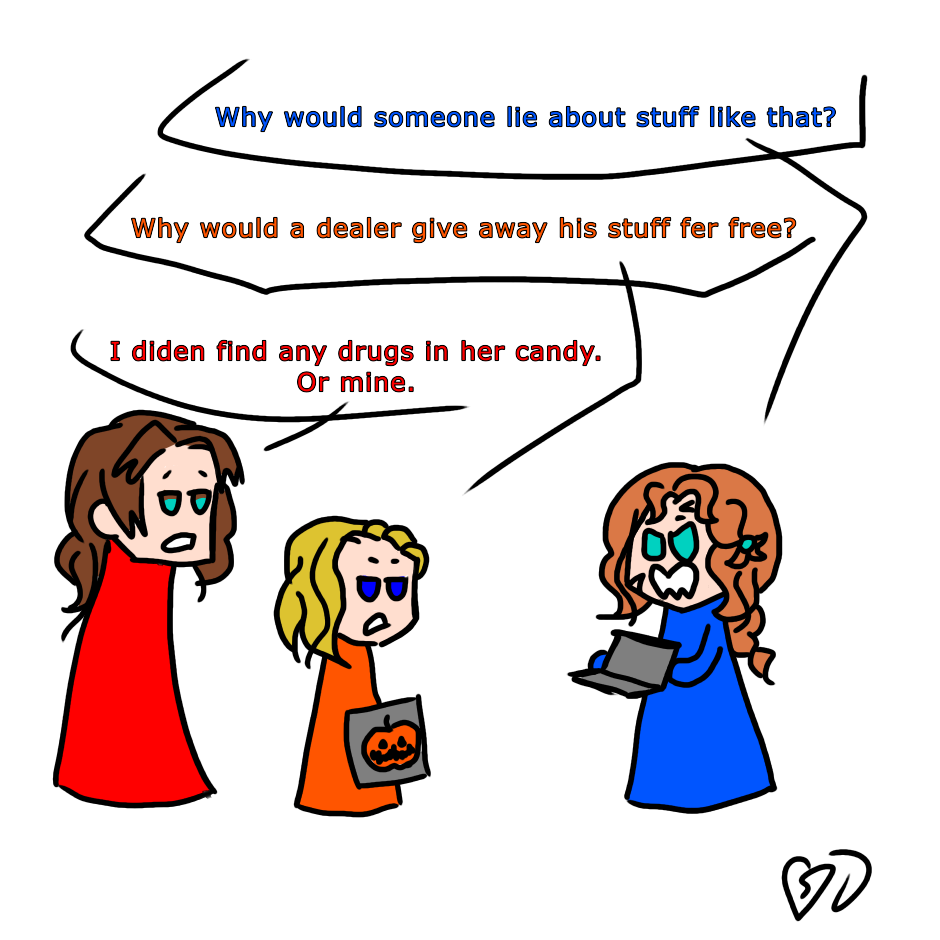 Yeah, the whole thing about drugs in candy is a myth, however, there’s always an article about kids finding other things in their chocolate. Any stories about poisoned candy wasn’t the work of random strangers. Of course, the media and D.A.R.E groups helped to perpetuate the myth. I was pretty lucky and never got any of those surprises.