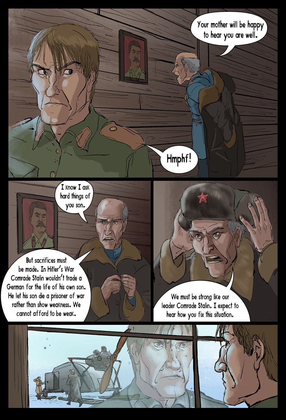 Holy cow the NKVD official does not mess around. From what I am seeing so far the NKVD official is threatening to dispose of his son if he doesn't deal with the Tiger. The Gulag commander doesn't want to abuse the Tiger, but if he doesn't do so he will face the wrath of his father who is very clearly into the NKVD's beliefs. What a mess of a situation. I also feel bad for the prisoners of the Gulag. They finally have a symbol of hope in their state of mistreatment and it is about to get taken away from them.
