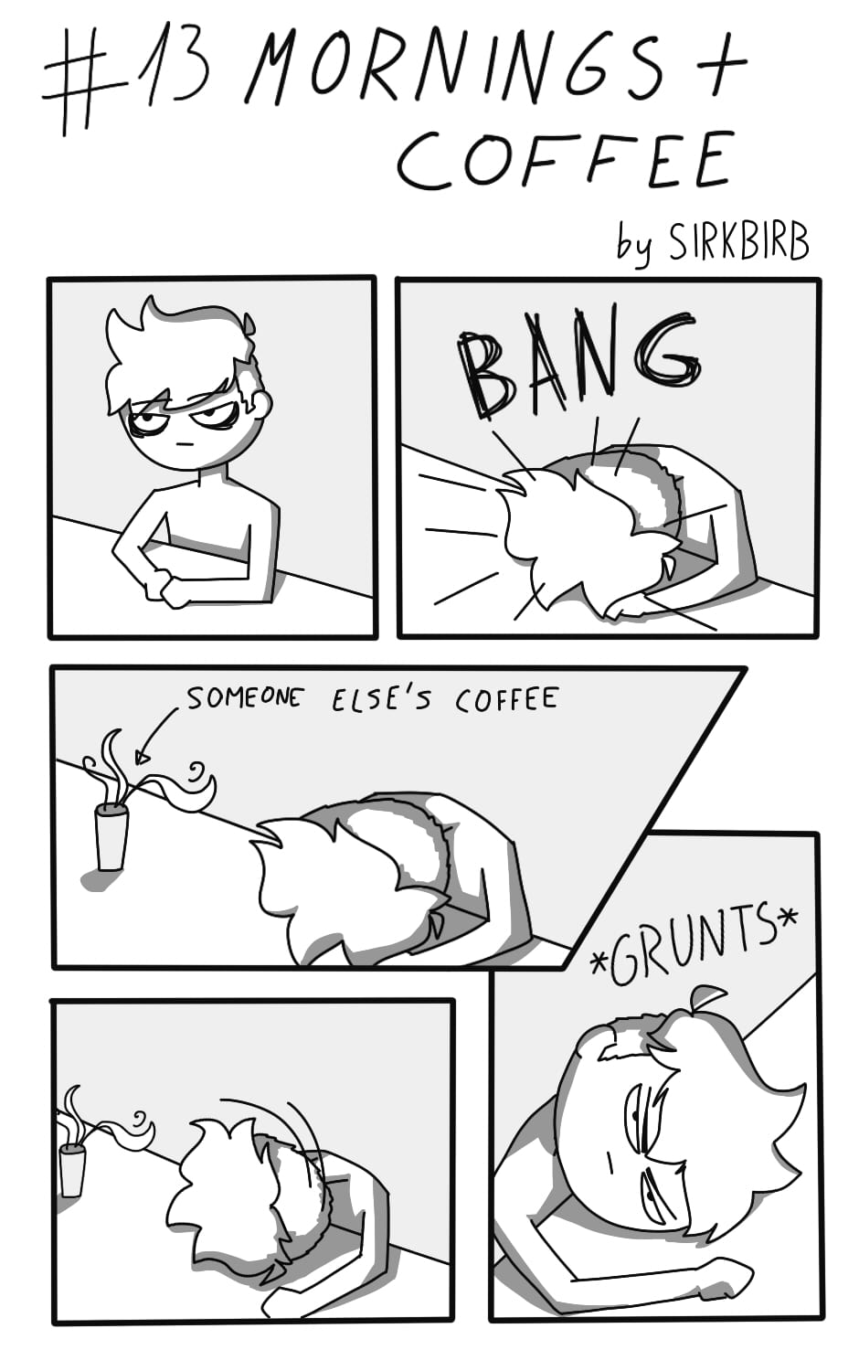 I had a rough sketch of just Kris staring at the coffee with murder in their eyes. Coffee is your best friend when you're an art student or just attend college xD