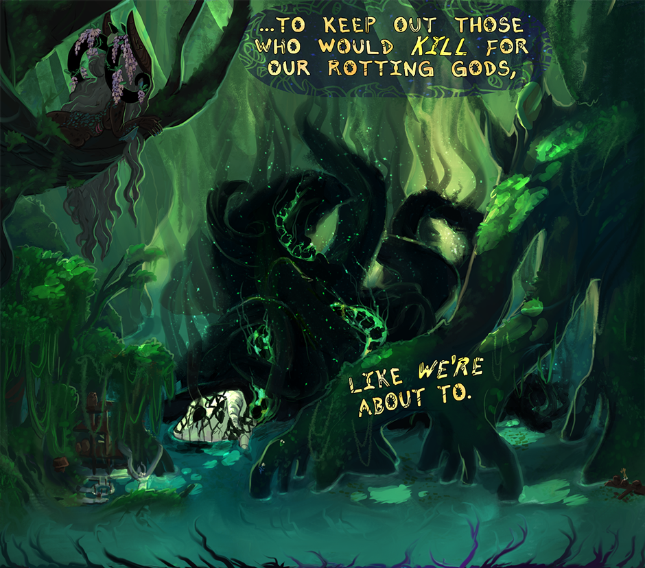 A coven saves two deserters from a soon-to-be cult, involving them in a dispute between the coven and the swamp's magic and debatably-dead inhabitants.