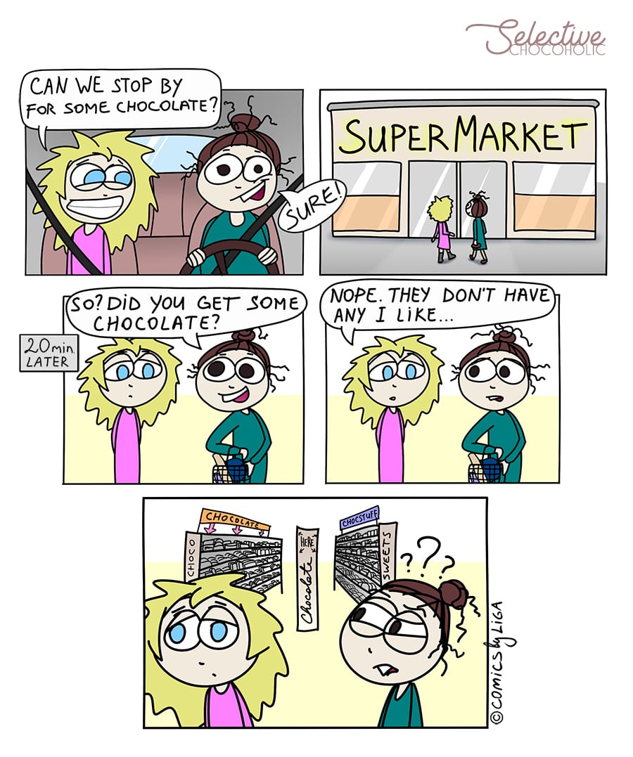 I wanted to clarify that just because someone claims to be a "chocoholic" does not mean they eat every chocolate piece they find on their way.. :)