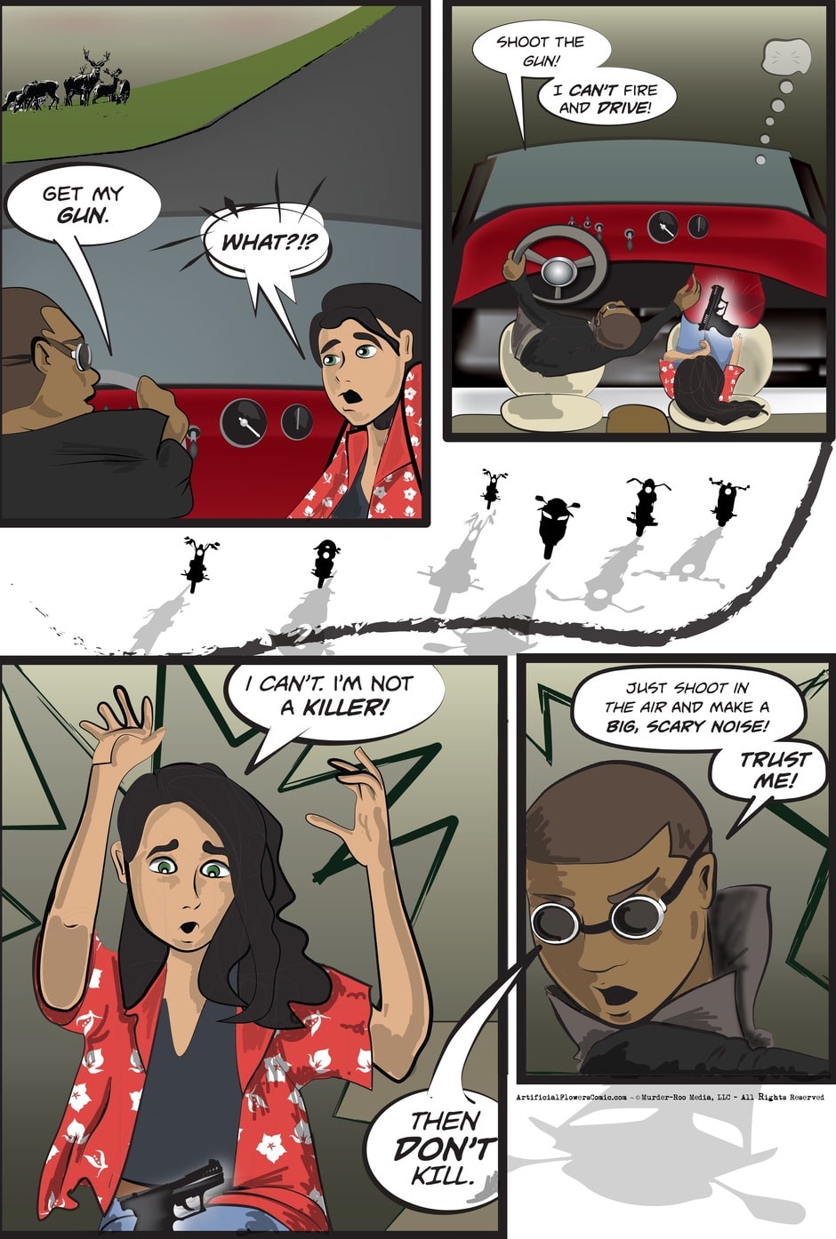 New pages drop every Tuesday here and at artificialflowerscomic.com.
