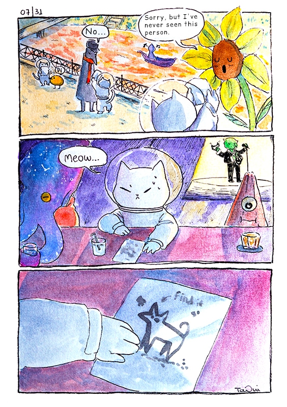 Some things have been revealed. Our astronaut mission is to find someone....also they only talk meowing