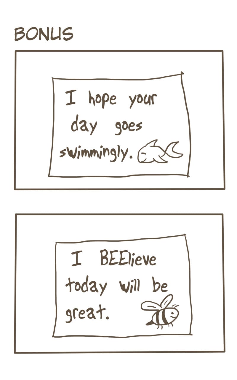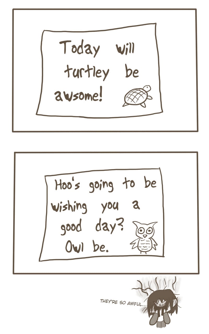 He's ashamed of those awful puns.