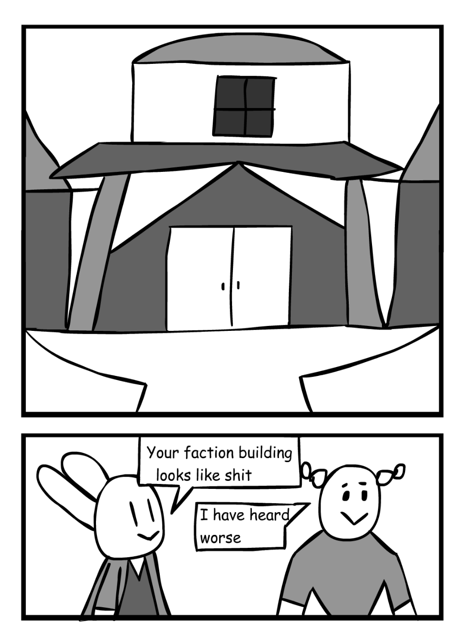 Lenny and S.C. are having a good ol time visiting their new bud's faction base