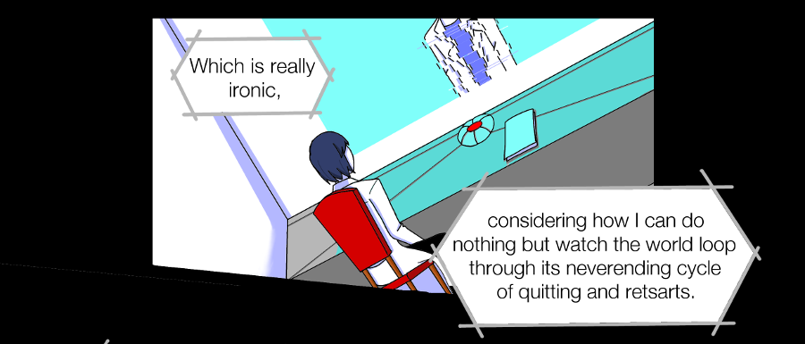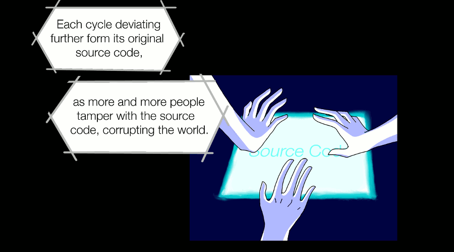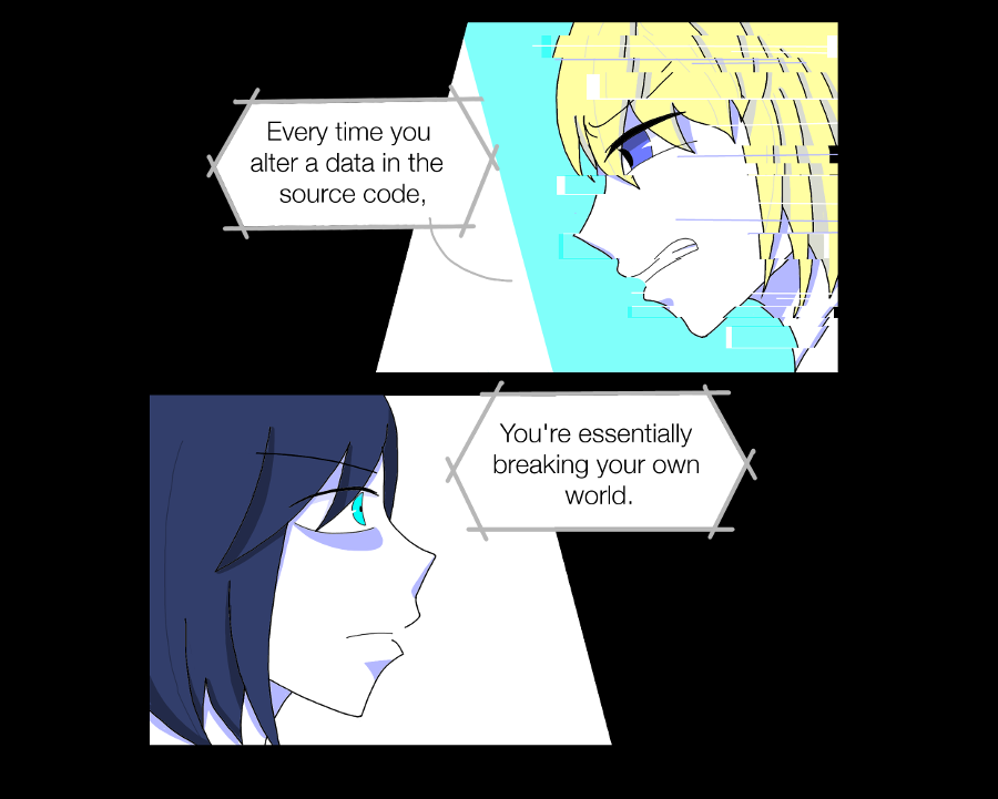 Eleanor tampered with the source code to jump around places, to enter secret areas, to alter fates of the world. Obliviously, she continued doing it to quench her curiosity.