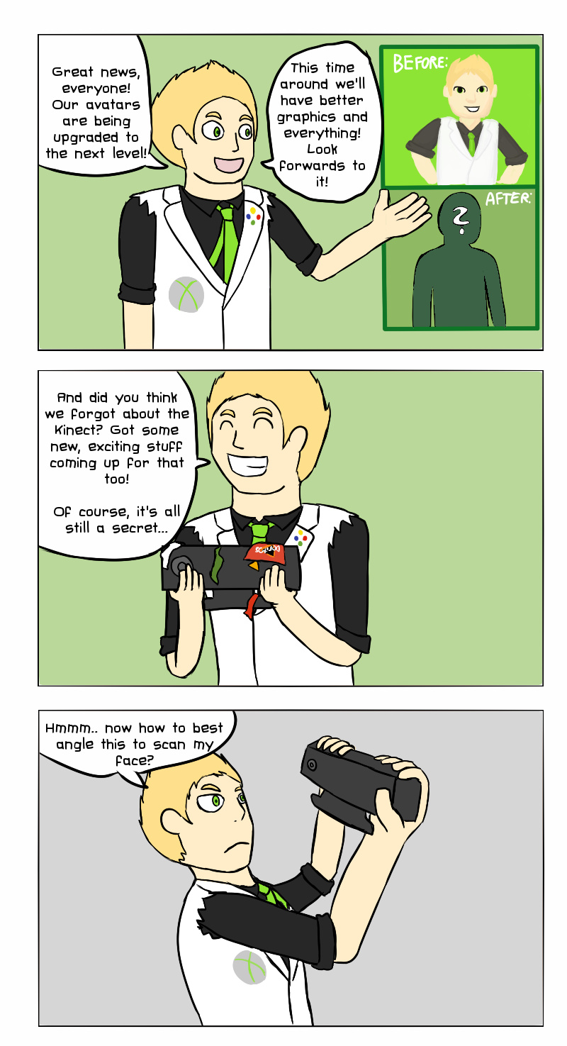 (Fun fact: I first got this idea when I read about the avatar upgrades, and then realized it wouldn't be relevant anymore since they didn't do much with Kinect anymore... then I saw the thing about Kinect and I started working on it again :D)