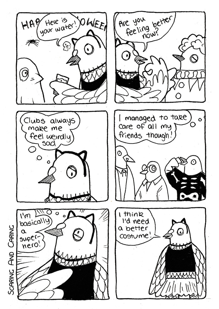 Pigeon spends spooky-season being a caring friend.