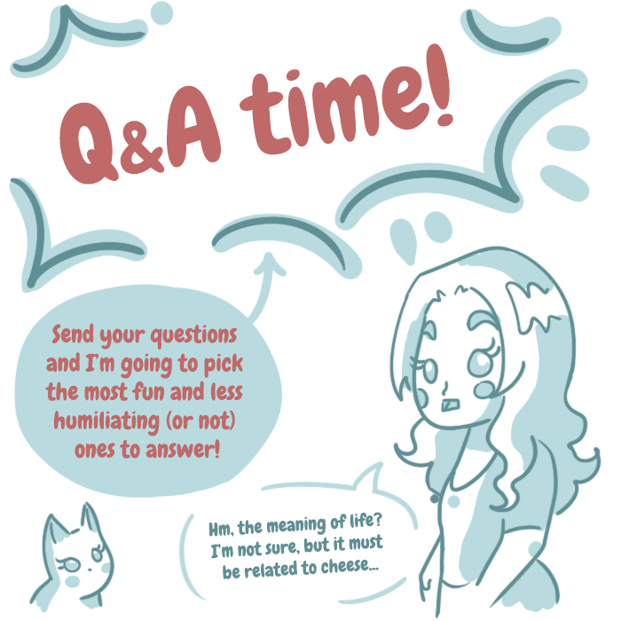 Just comment them here and let's have fun! I'm going to answer some of your questions with a few scribbles and comics sometime on the following month.