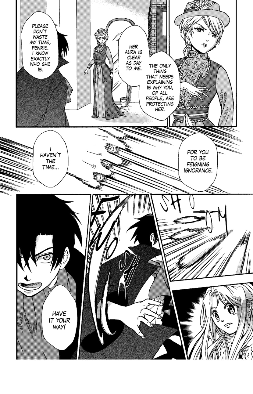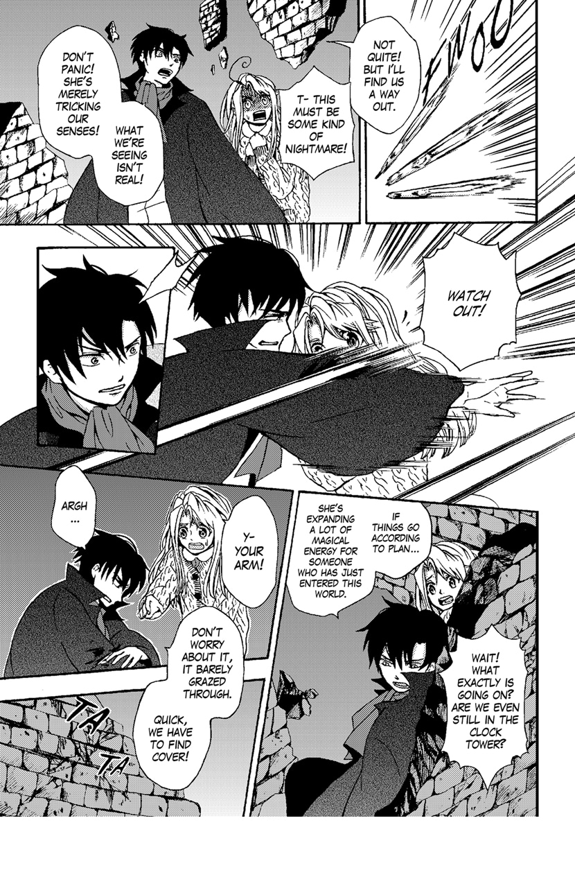 Alice lives a normal life, or so everyone thinks. She is a girl who was mysteriously found in a clock tower with no memory of the life she had before. She yearns for her past memories so she can make sense of how her life came to be. However, her hopes are both fulfilled and destroyed when she discovers there are strangers from “another world” – persecutors who accuse her of being a “witch”. She is aided by Fenris, a “magus” who holds pieces of the puzzle to her past. With her peaceful life now disrupted, Alice finds herself drawn into the disarray of a witch hunt.