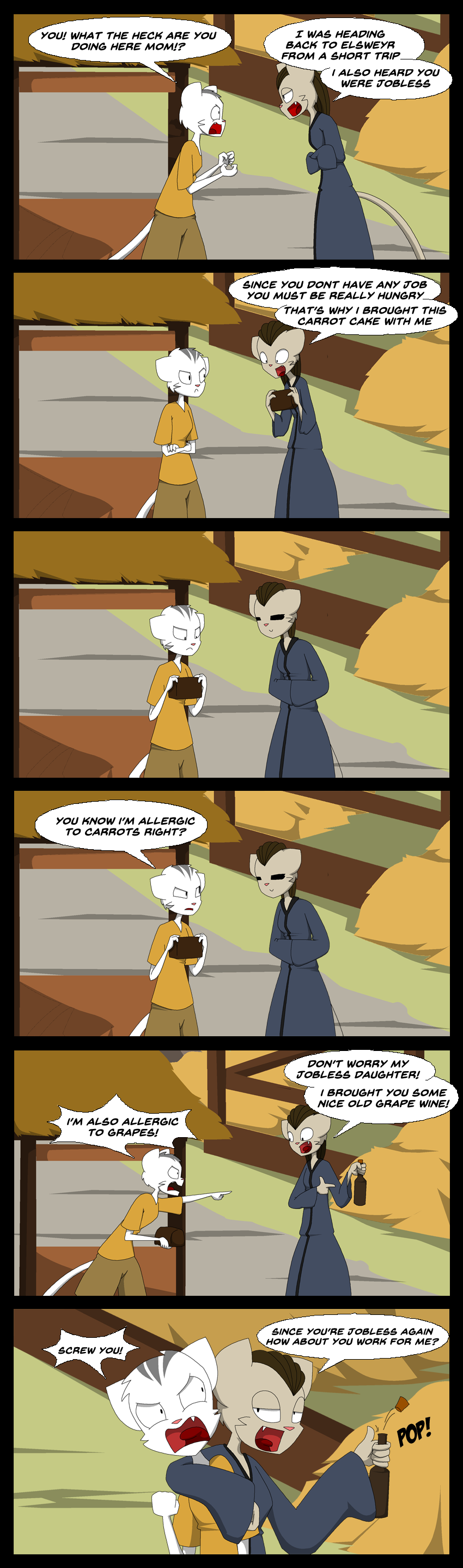 So Kishna can't find any job right now mainly because of her attitude towards her boss or it maybe because she's a Khajiit. Also her mom showed up