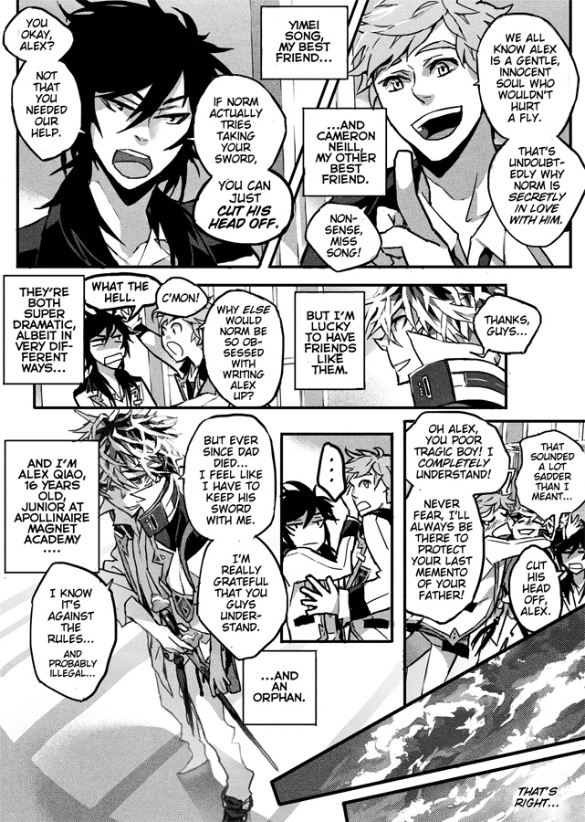 High school junior Alex has nothing left of his father but his sword. Until a strange boy appears out of nowhere (literally) and steals it.