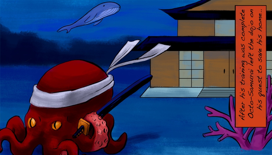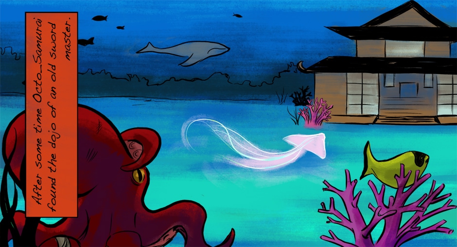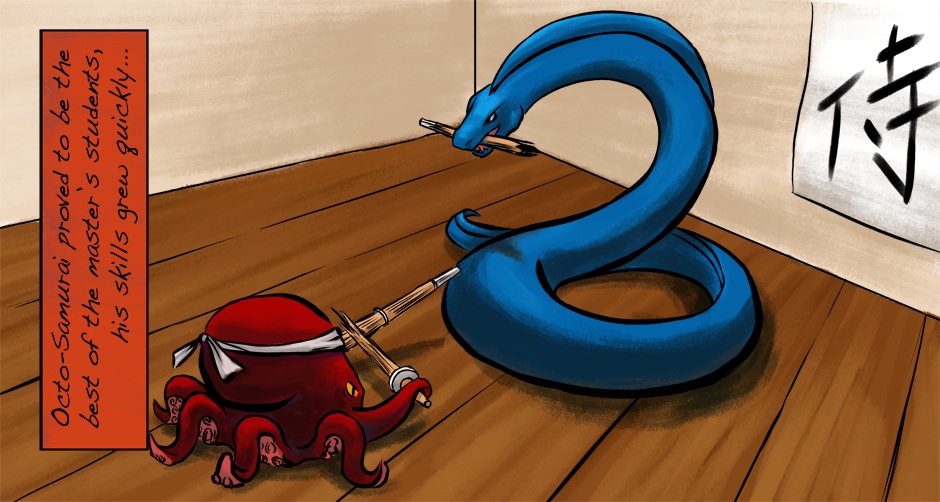 Flashback Part 2: Octo-Samurai's transformation from a weak ordinary octopus to a highly skilled warrior.