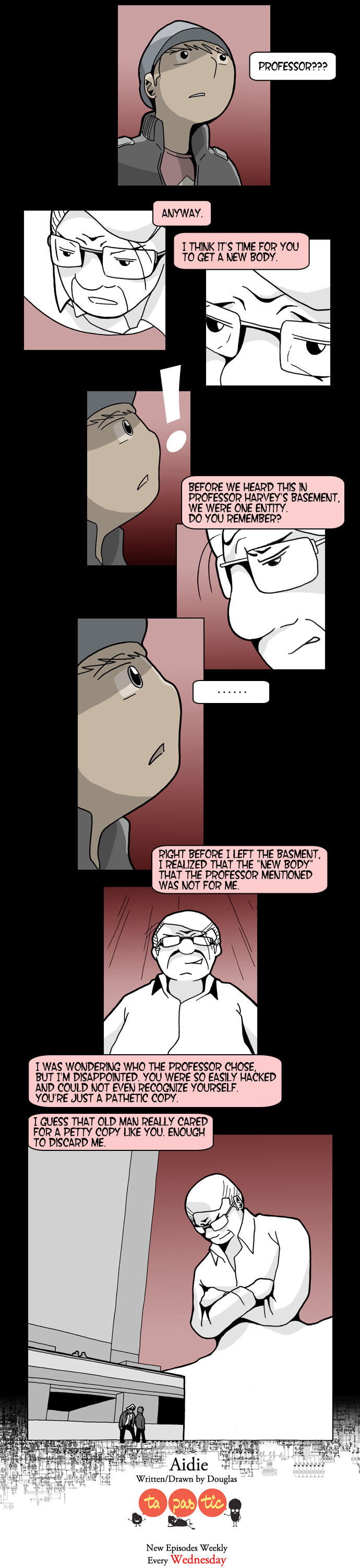 Aidie is KN Group's mascot robot that has been greeting the employees every morning. Its creator, Professor Harvey, takes Aidie on the day of his resignation and risks his life to protect it from the company. What secrets does this one robot hold?