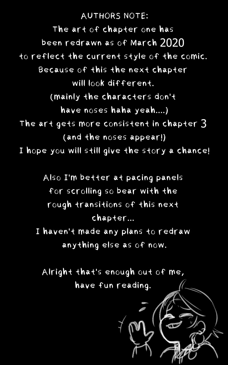 Yay Chapter 2! From now on updates wont be as big as they were in the first chapter because I have no time and I'm running out of buffer. I feel in terms of art and style I'm finally getting my crud together so I'm much happier with this chapter art and dialogue wise. It also helps that I have a good computer to work on now. You may notice this better computer means the line art is different *cough cough* better.