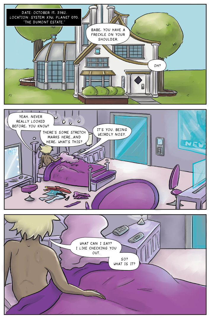 A conversation. We're uploading by scene here, but we upload one page a week on our main site! Feel free to follow there.