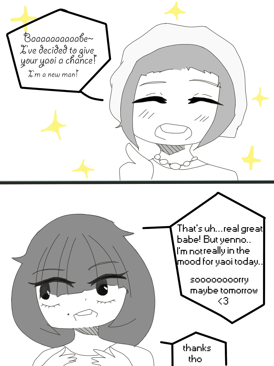 MORE NON QUALITY CONTENT Happy 6 months to LightsDownLow, I love you :') This is just something quick, since my laptop isn't acting up AS bad. I hope it stops being dumb soon. -------- http://tapastic.com/series/My-Boyfriend-Is-an-Otaku