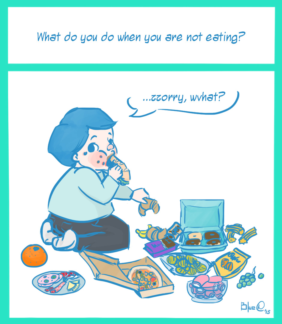 So the other day I was thinking what I'm doing when I'm not eating, but I realize that when I start thinking about it I was eating too. So... That's all the story.